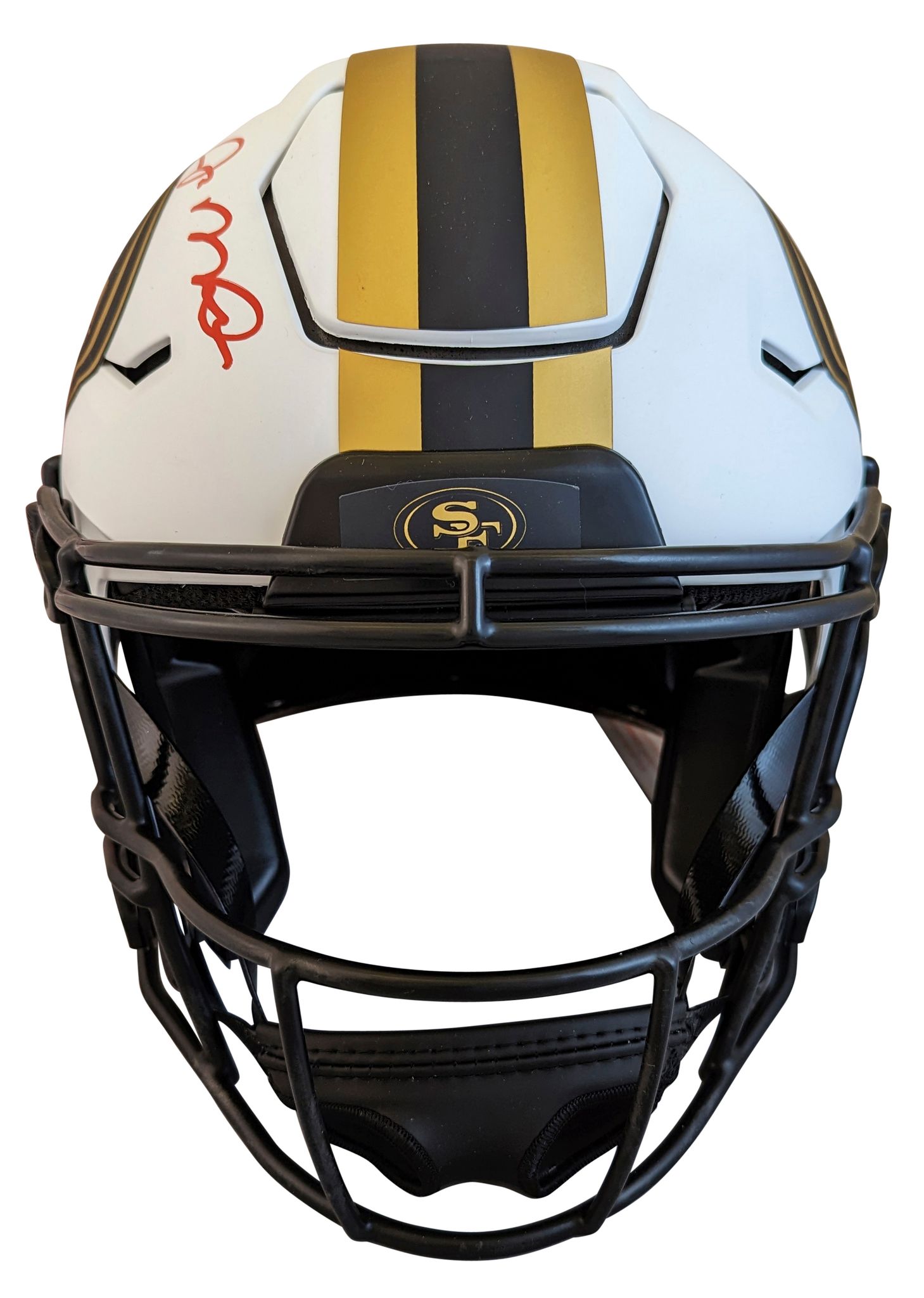 Riddell San Fransisco 49ers full-size authentic on-field lunar eclipse alternate SpeedFlex helmet. Hand-signed by Joe Montana (HOF).