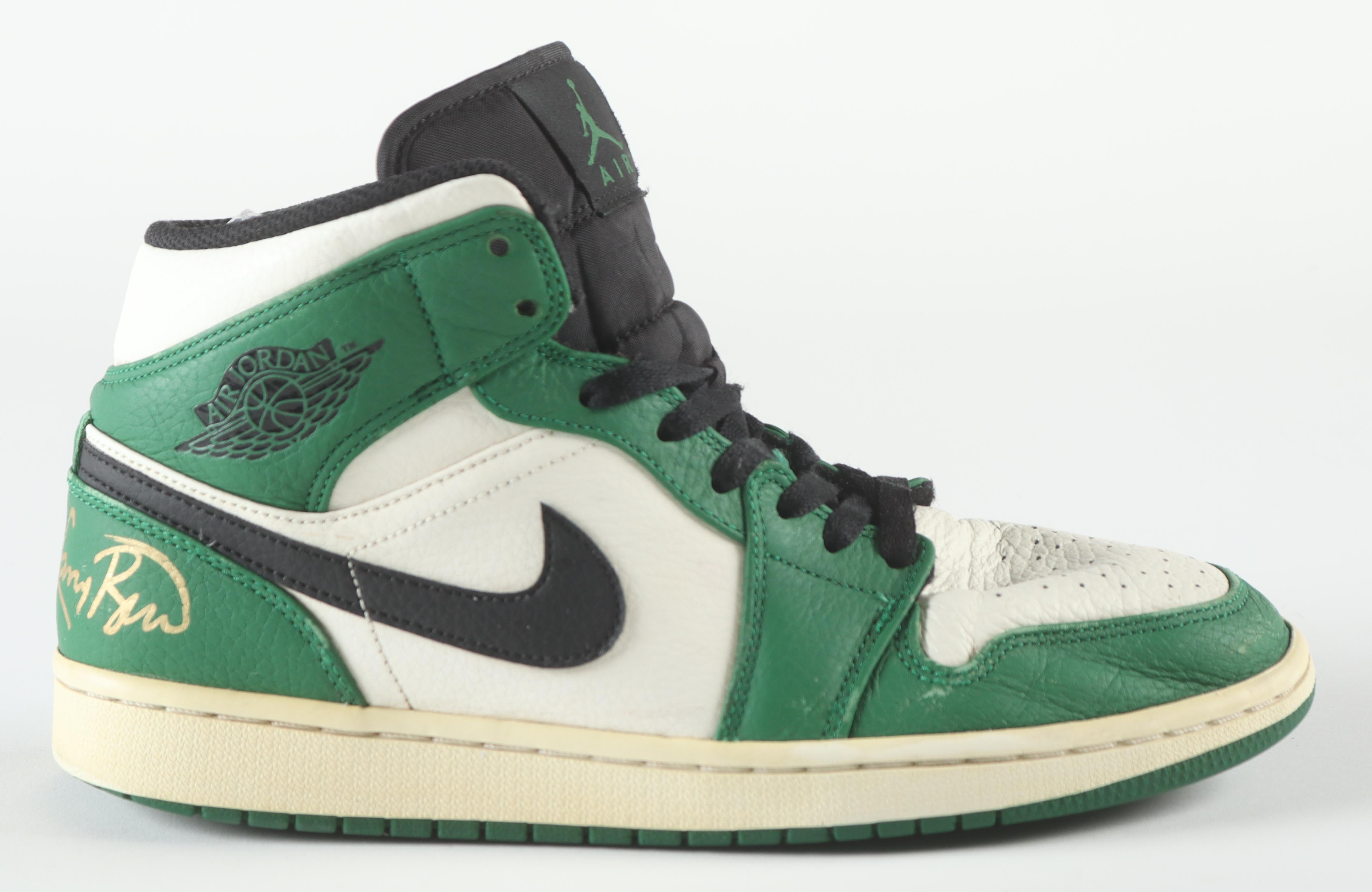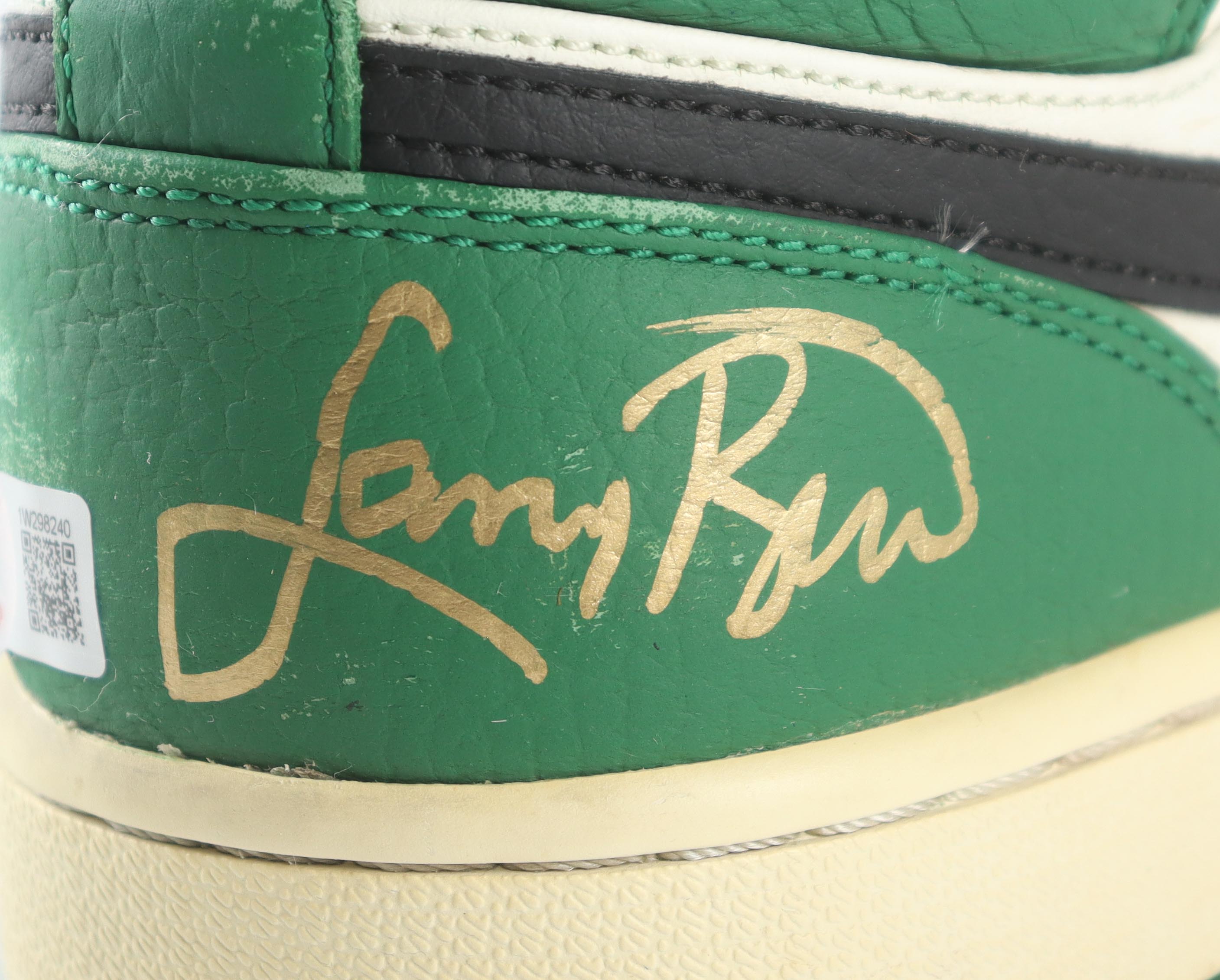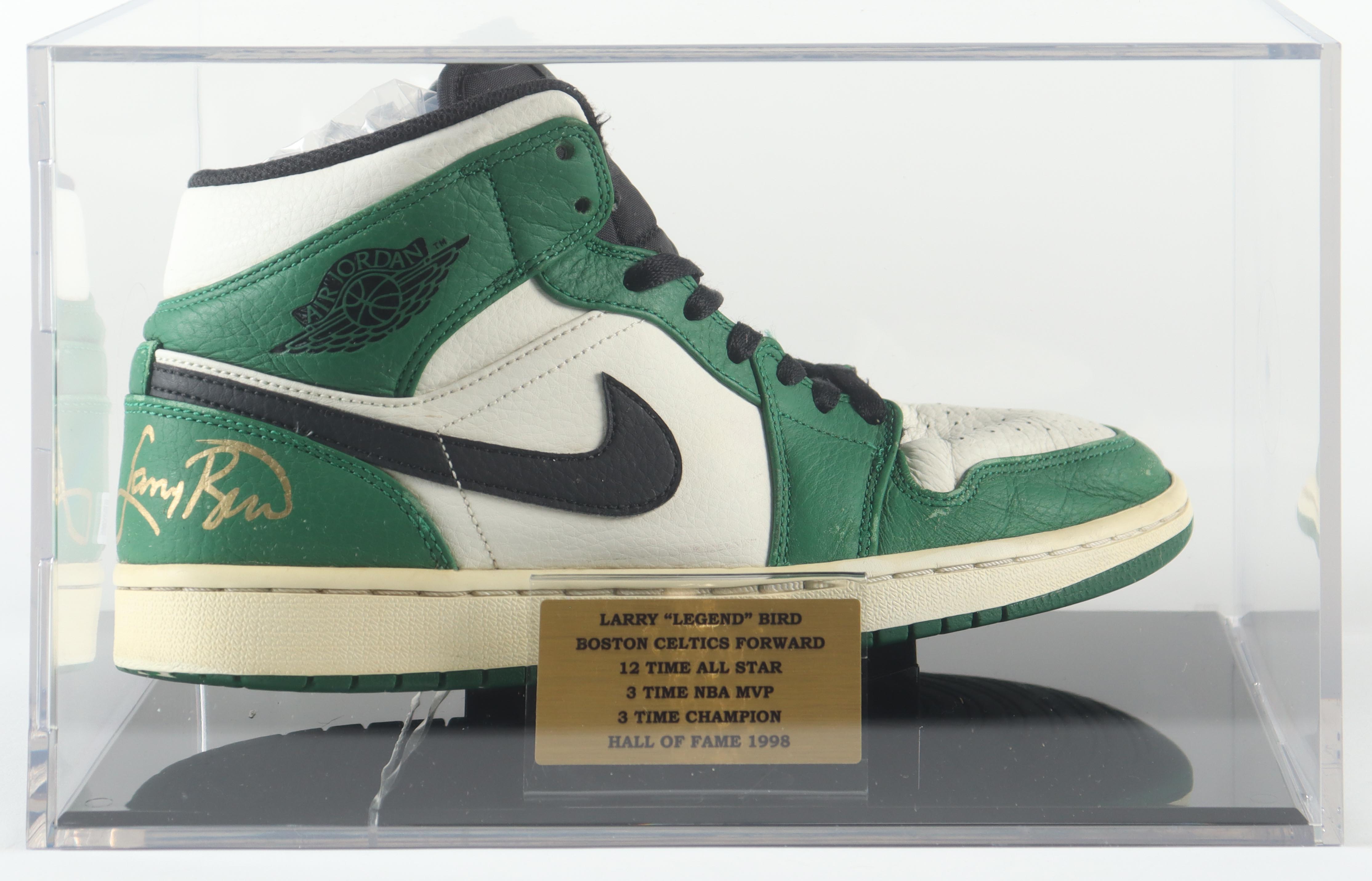 Nike Air Jordan 1 basketball shoes. Hand-signed by Larry Bird (Boston Celtics, HOF). Display case comes as shown. Please refer to photos for the condition of the shoe.