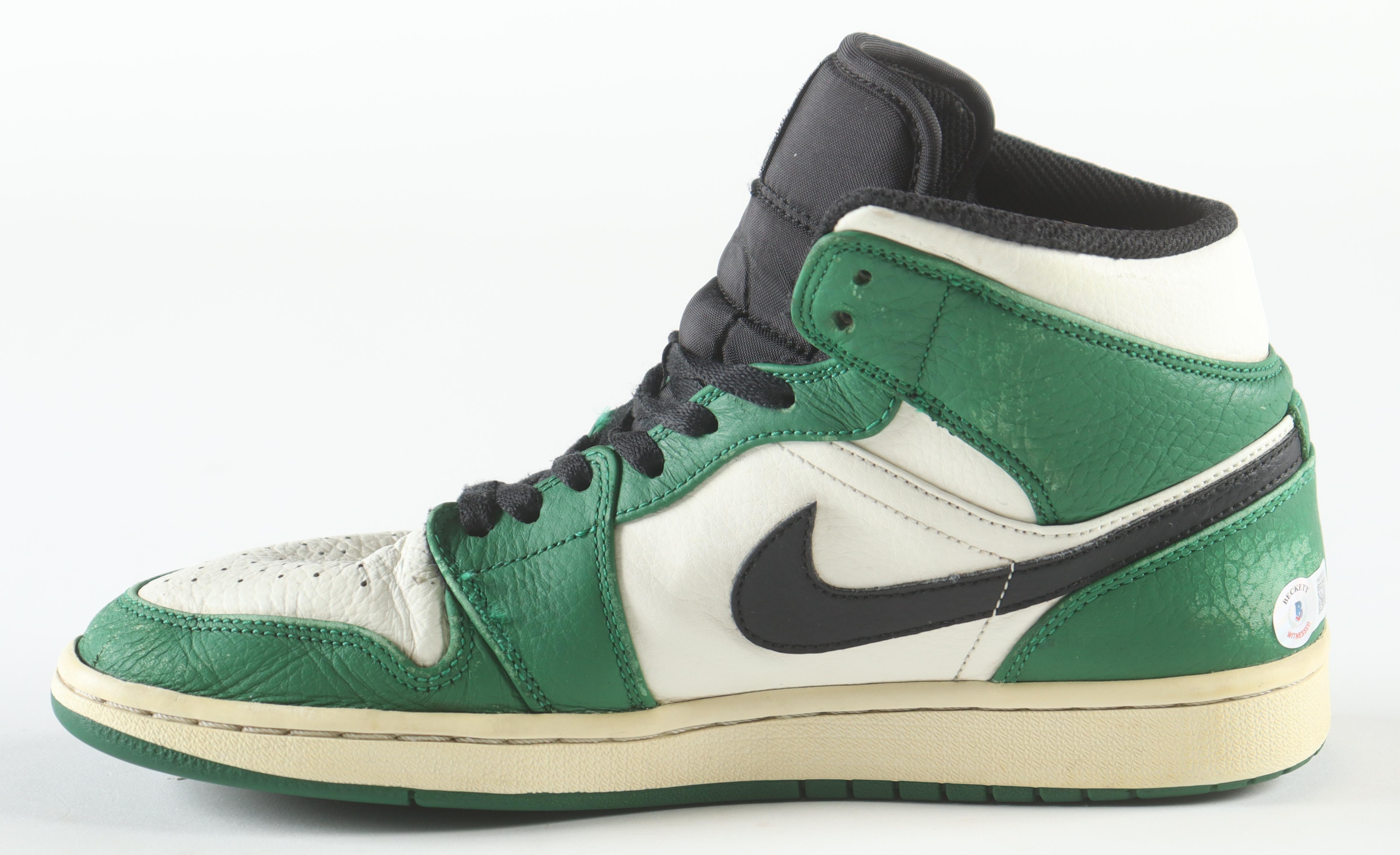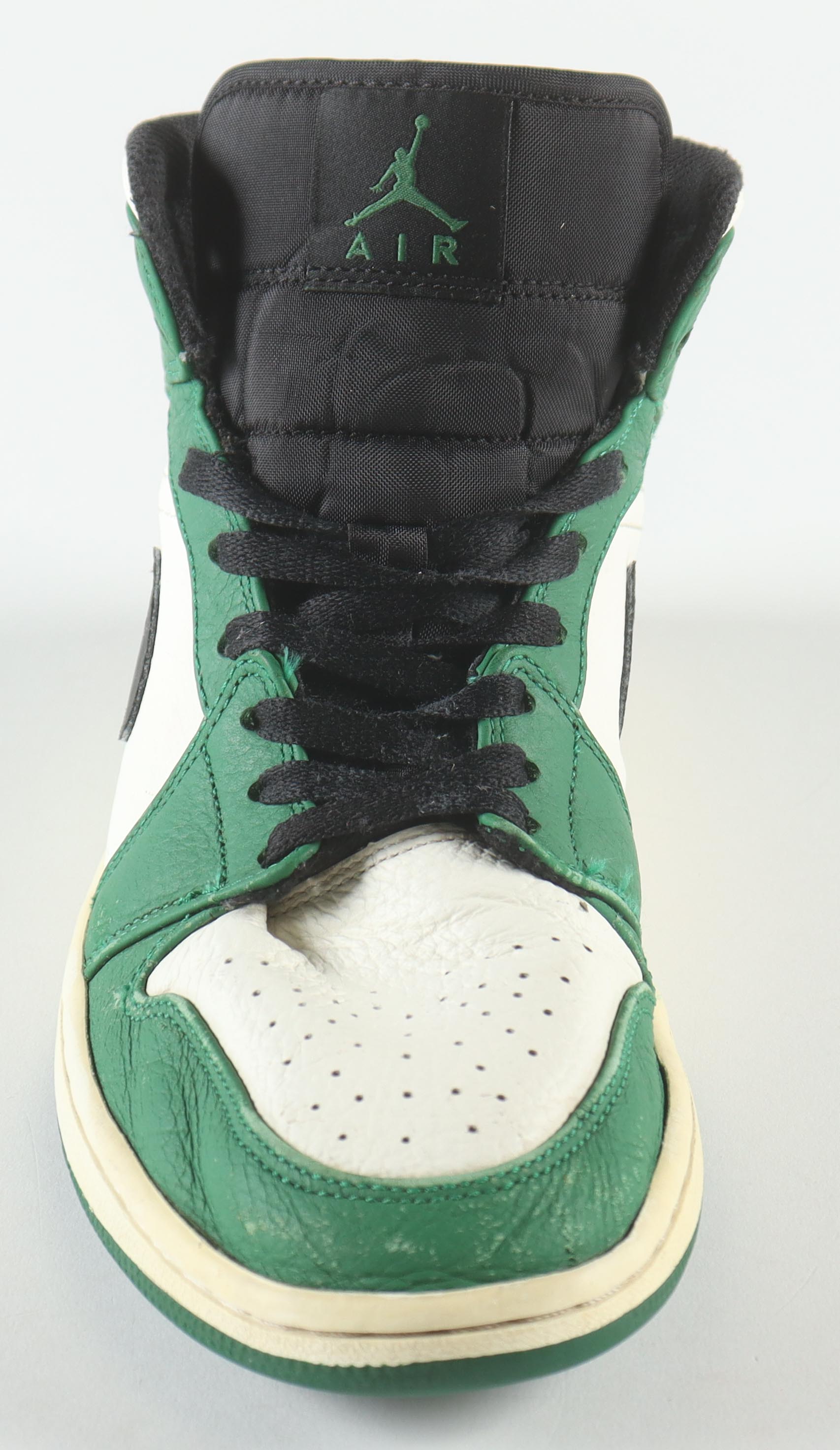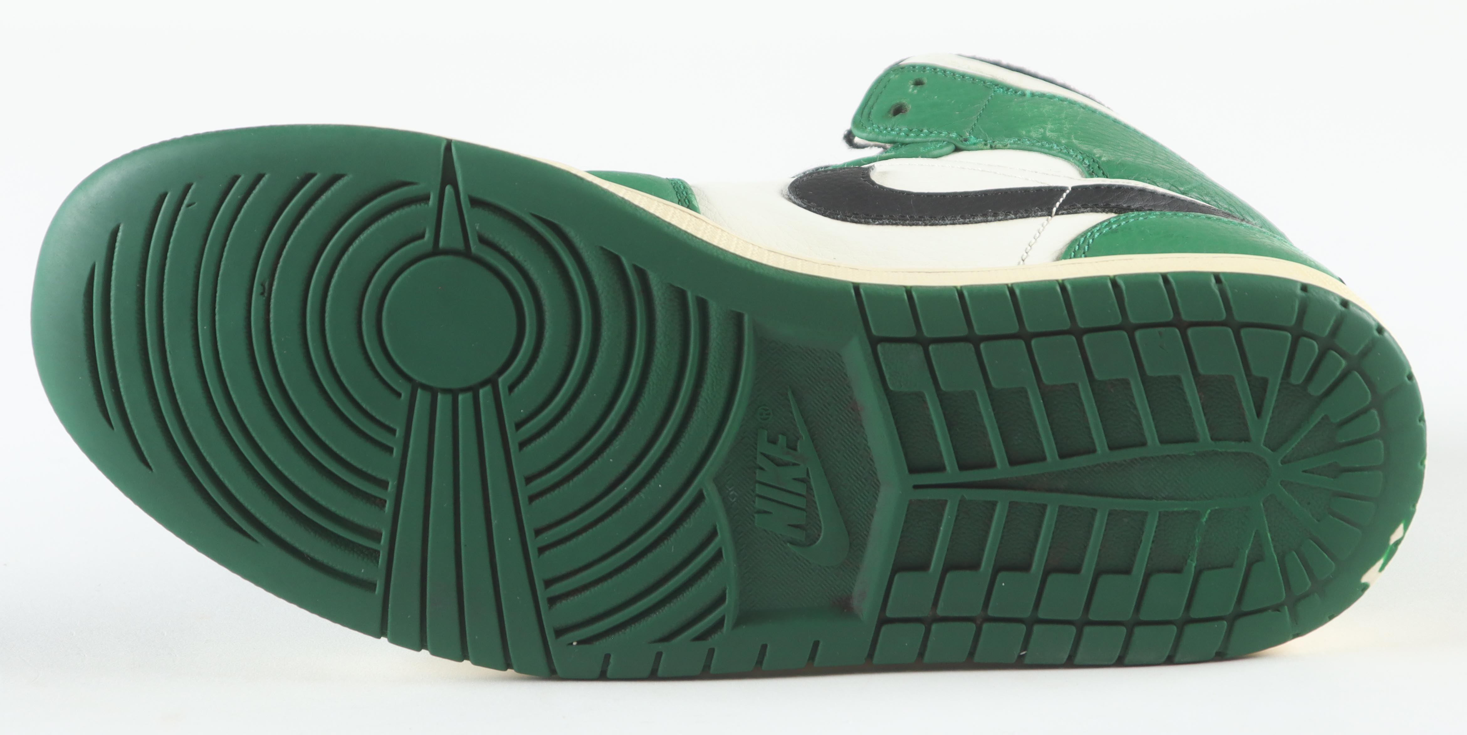 Nike Air Jordan 1 basketball shoes. Hand-signed by Larry Bird (Boston Celtics, HOF). Display case comes as shown. Please refer to photos for the condition of the shoe.