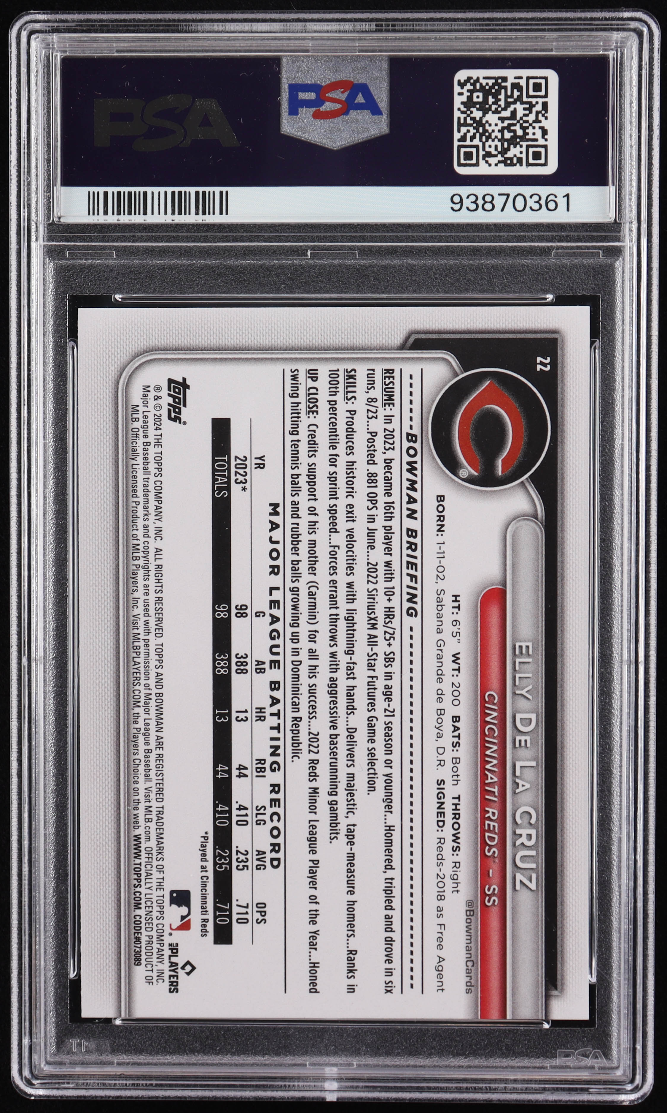 Elly De La Cruz 2024 Bowman #22 RC (PSA 10)