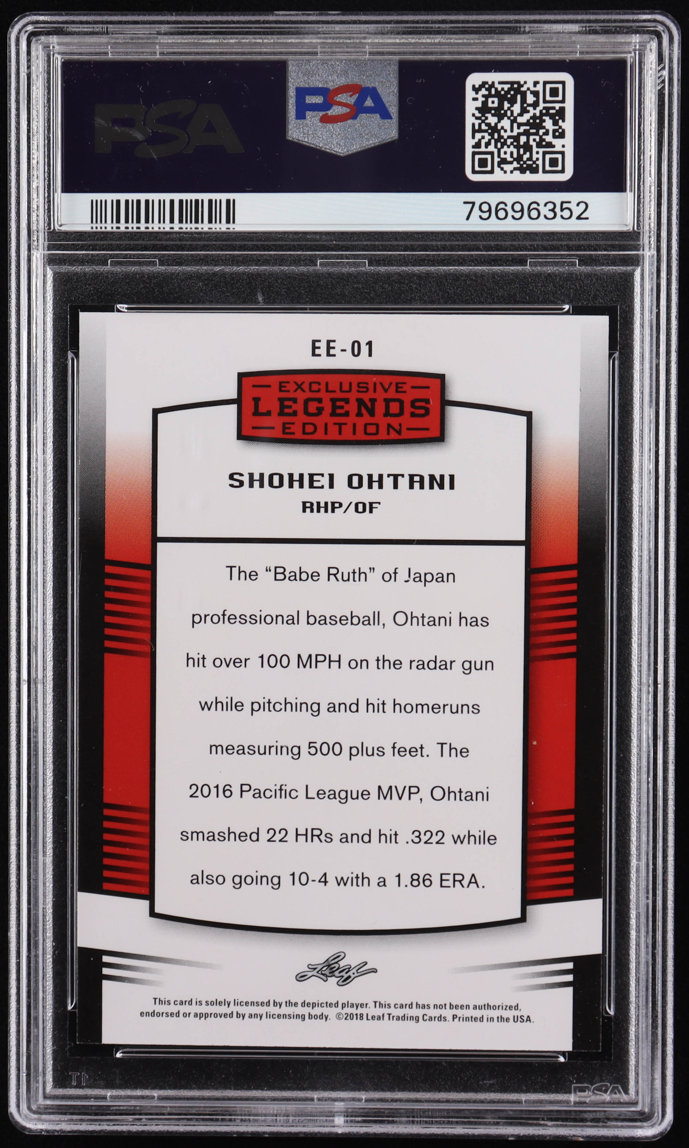 Shohei Ohtani 2018 Leaf Ohtani Legends Exclusive Edition #EE01 RC (PSA 10)