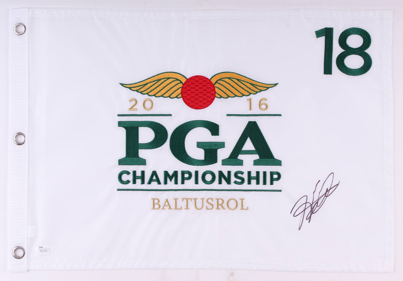 2016 PGA Championship pin flag. Hand-signed in black felt-tip pen by Hideki Matsuyama.