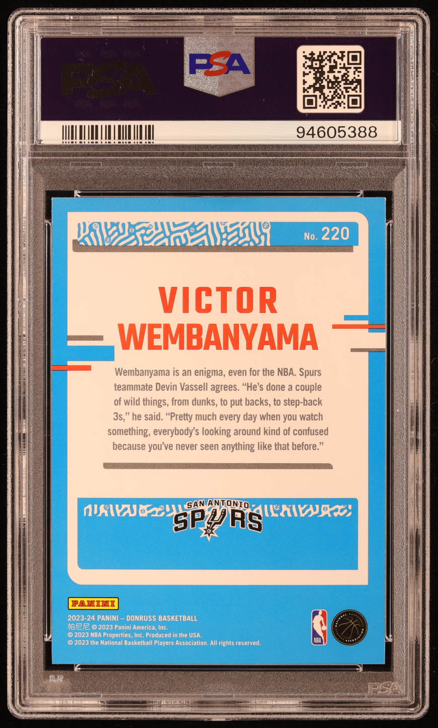 Victor Wembanyama 2023-24 Donruss Holo Green Laser #220 RC (PSA 9)