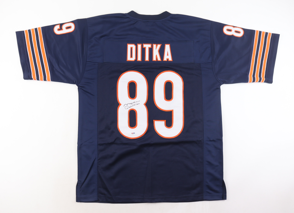 Custom jersey. Everything is sewn on, size XL. Hand-signed by Mike Ditka (HOF).