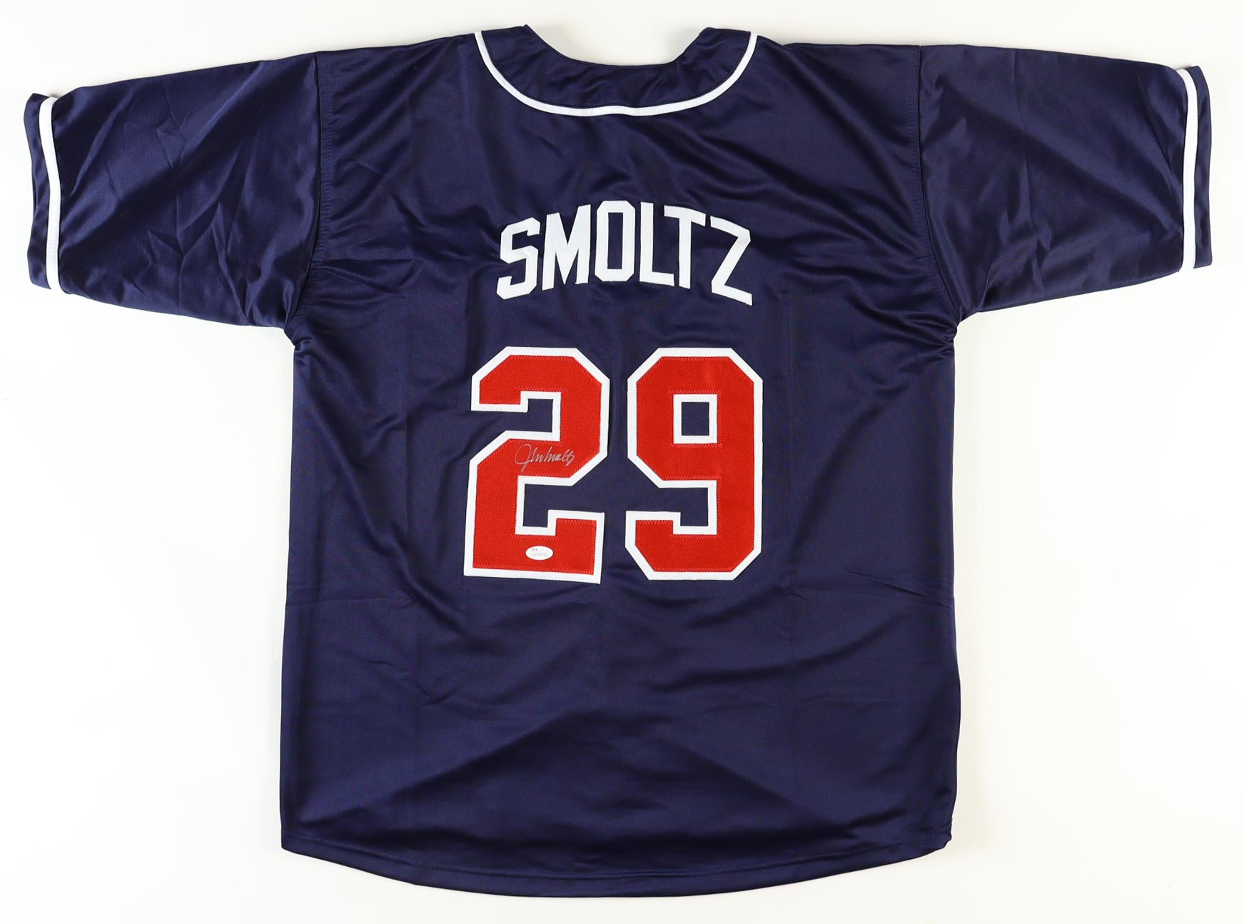 Custom jersey with everything sewn on, size XL. Hand-signed by John Smoltz (HOF).