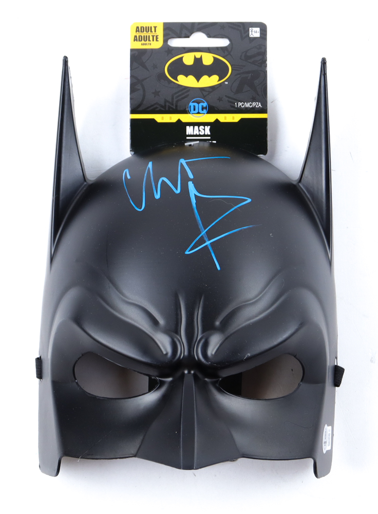 Plastic Batman mask has been hand-signed by Christian Bale.