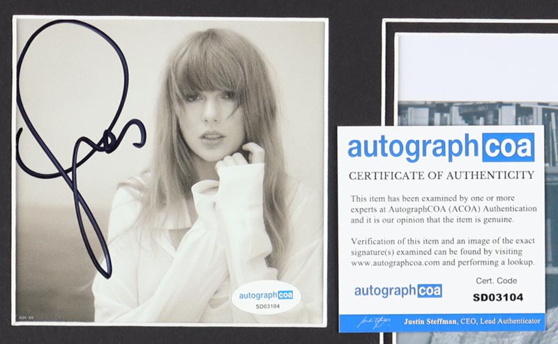 Custom matting measures 11" x 14" in size. Features a CD insert that has been hand-signed by Taylor Swift.