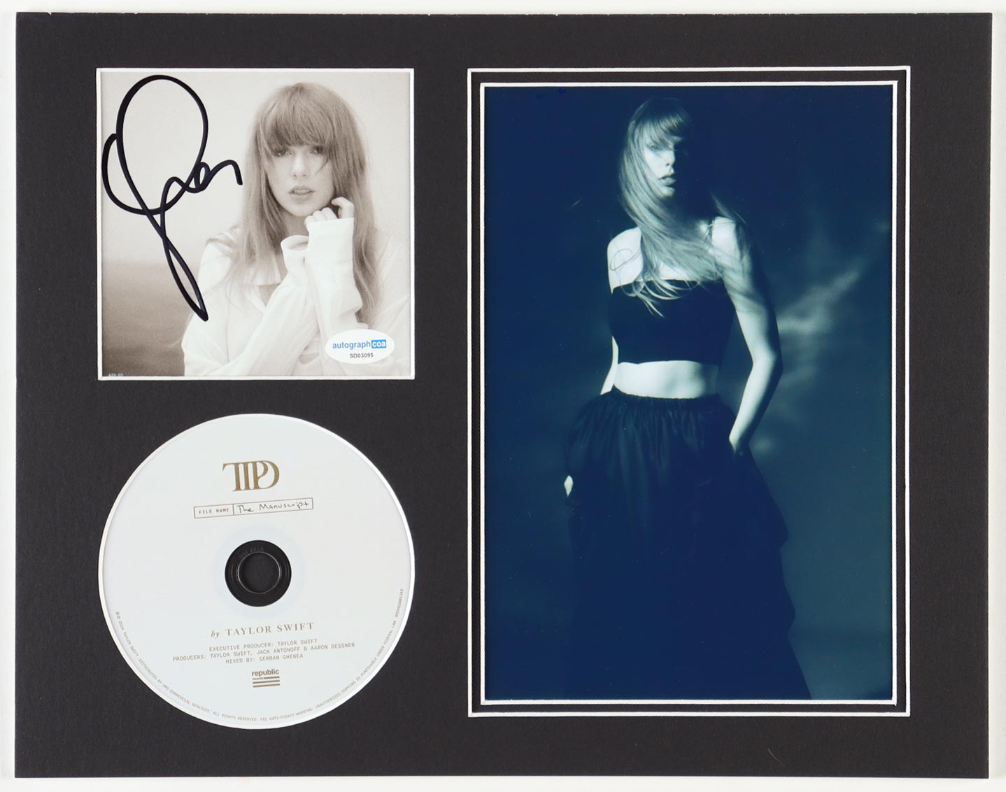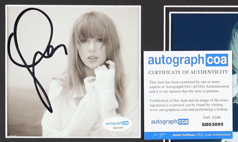Custom matting measures 11" x 14" in size. Features a CD insert that has been hand-signed by Taylor Swift.