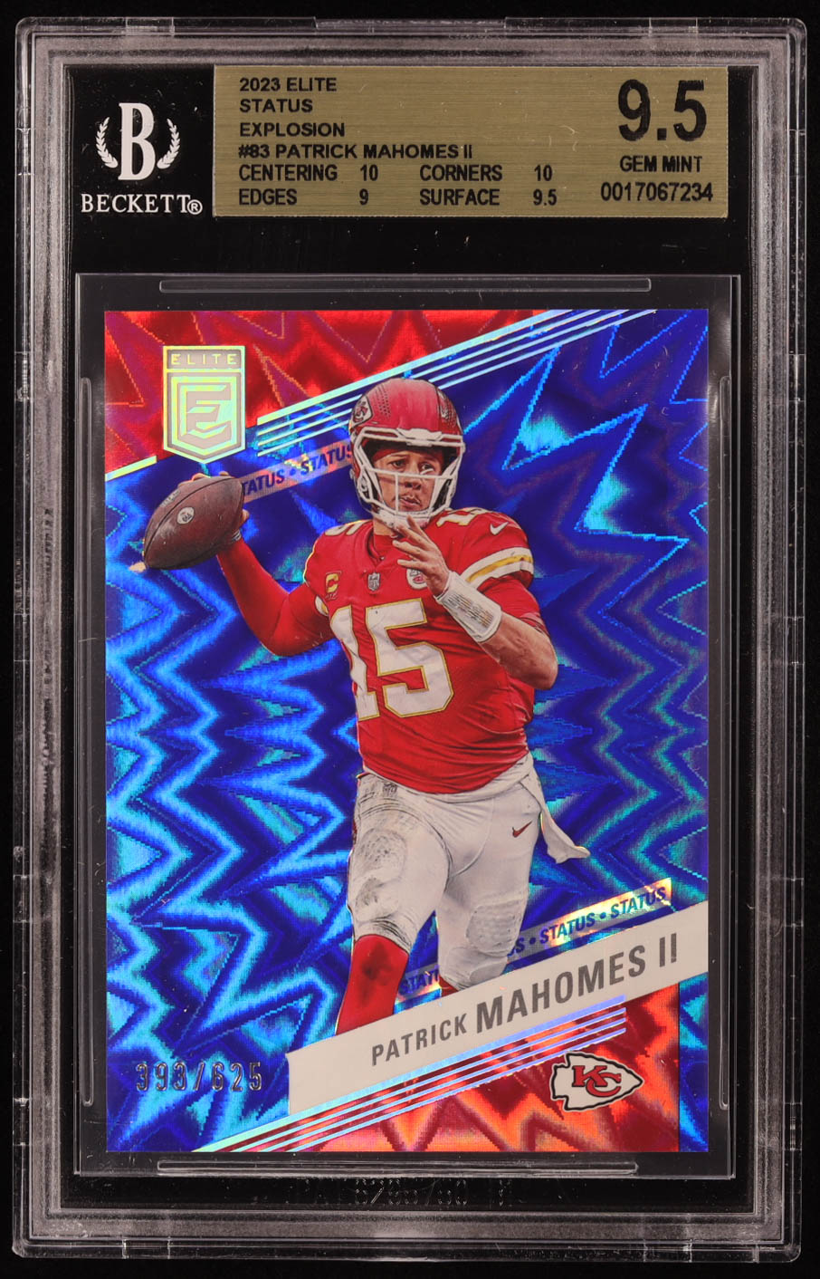 Patrick Mahomes II 2023 Elite Status Explosion #83 #393/625 (BGS 9.5)