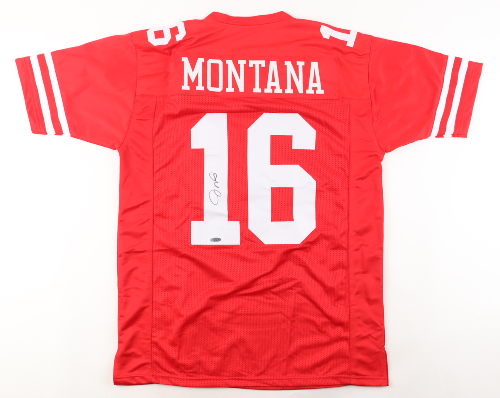 Custom jersey. Everything is sewn on, size XL. Hand-signed by Joe Montana (HOF).