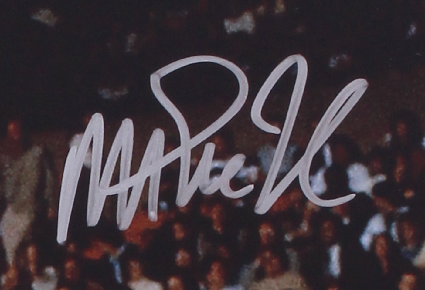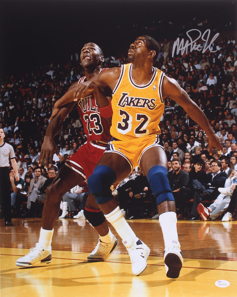 Photo measures 16" x 20" and has been hand-signed in silver paint pen by Magic Johnson. (Lakers, HOF)