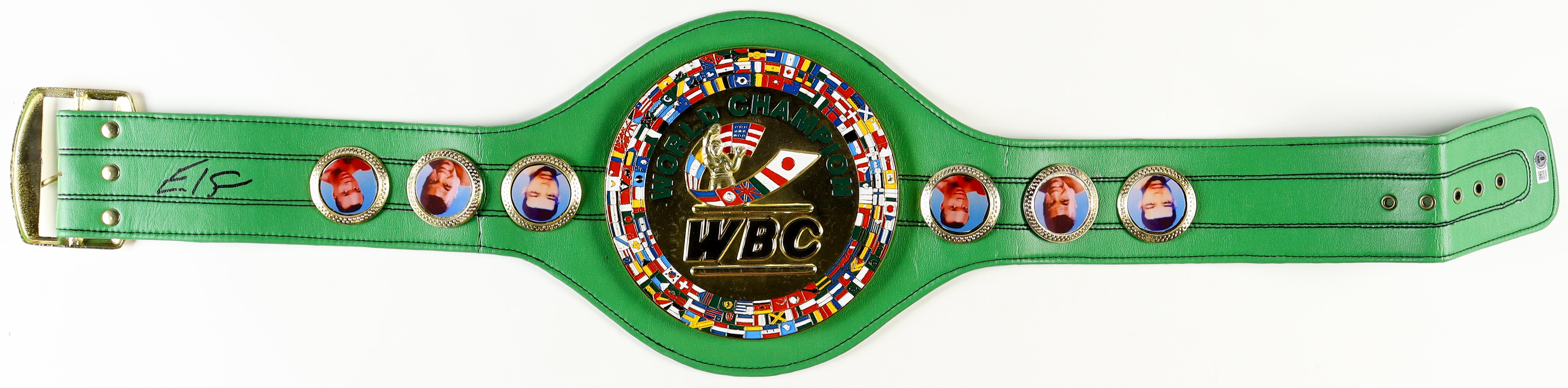 Full-Size WBC replica boxing championship belt measures approximately 49" in length. Hand-signed by Errol Spence Jr.