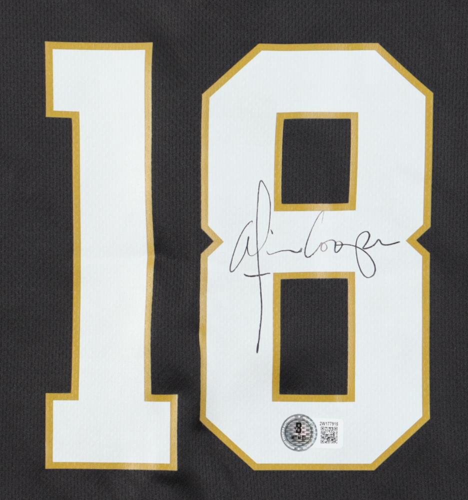 Wilson jersey with everything printed on, size L. Hand-signed by Alice Cooper. Please note, there is a stain on the front of the jersey.