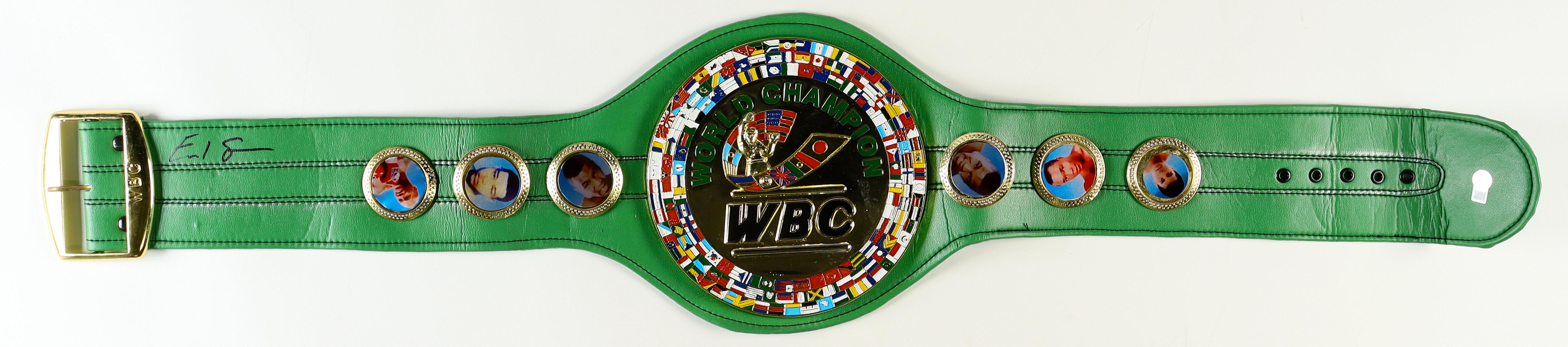 Full-Size WBC replica boxing championship belt measures approximately 49" in length. Hand-signed by Errol Spence Jr.