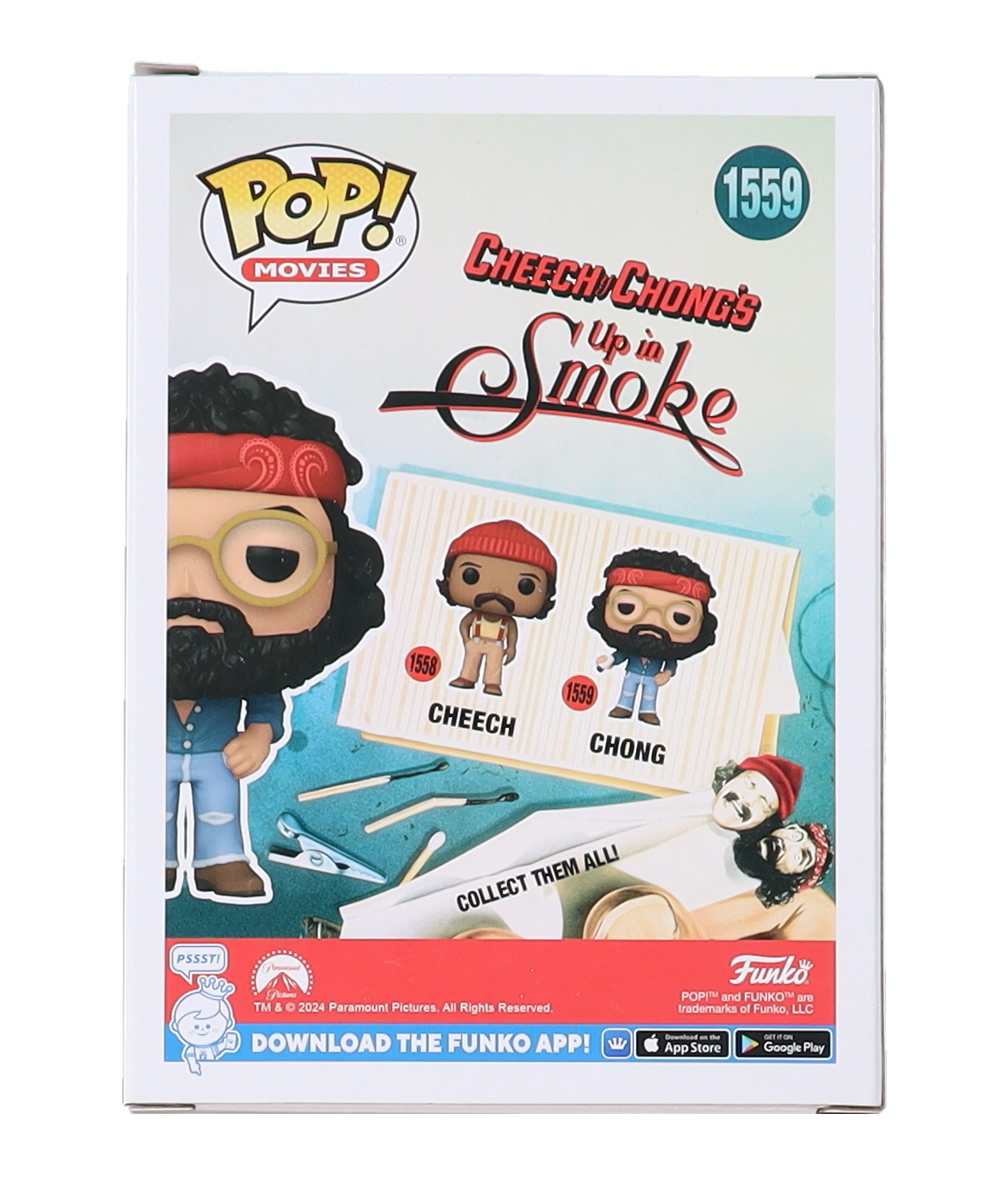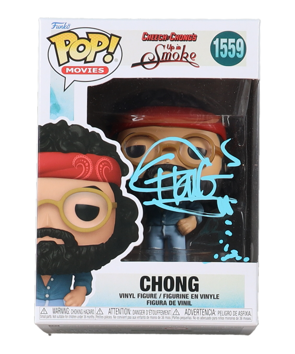 Funko pop! vinyl figure measures approximately 4" tall and the packaging has been hand-signed by Tommy Chong.