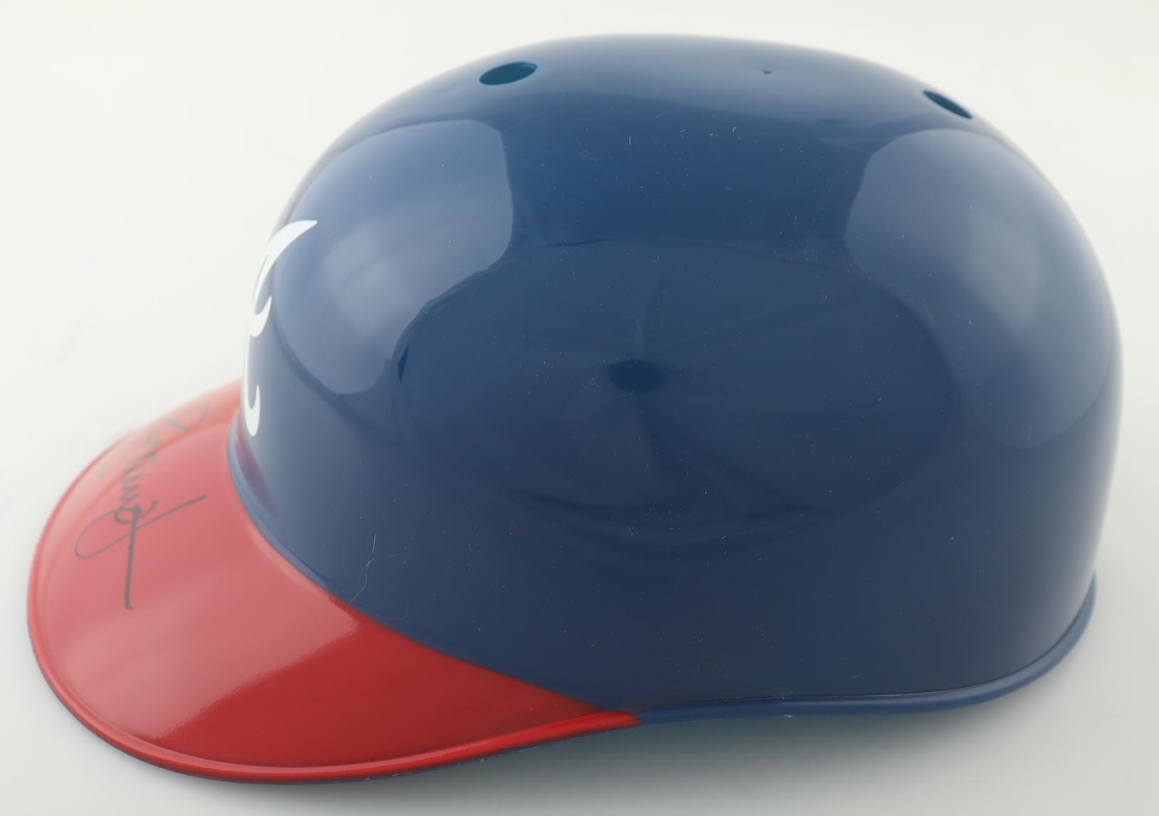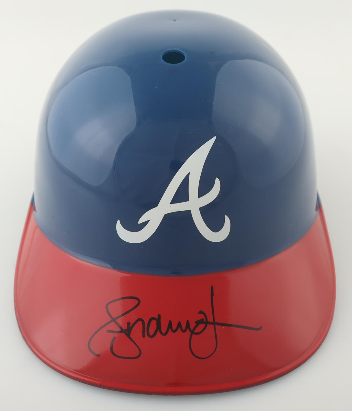 Atlanta Braves full-size plastic souvenir replica batting helmet. Hand-signed by Andruw Jones.