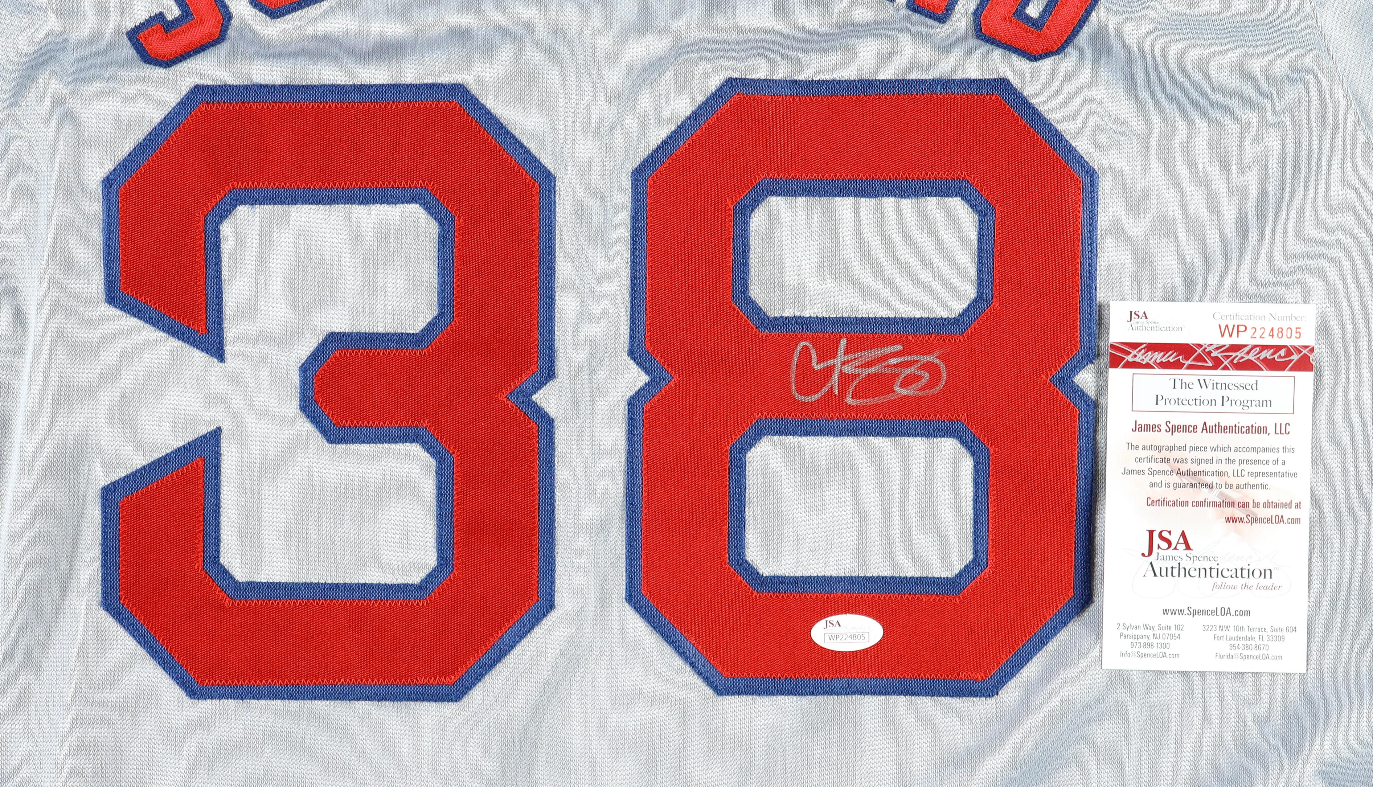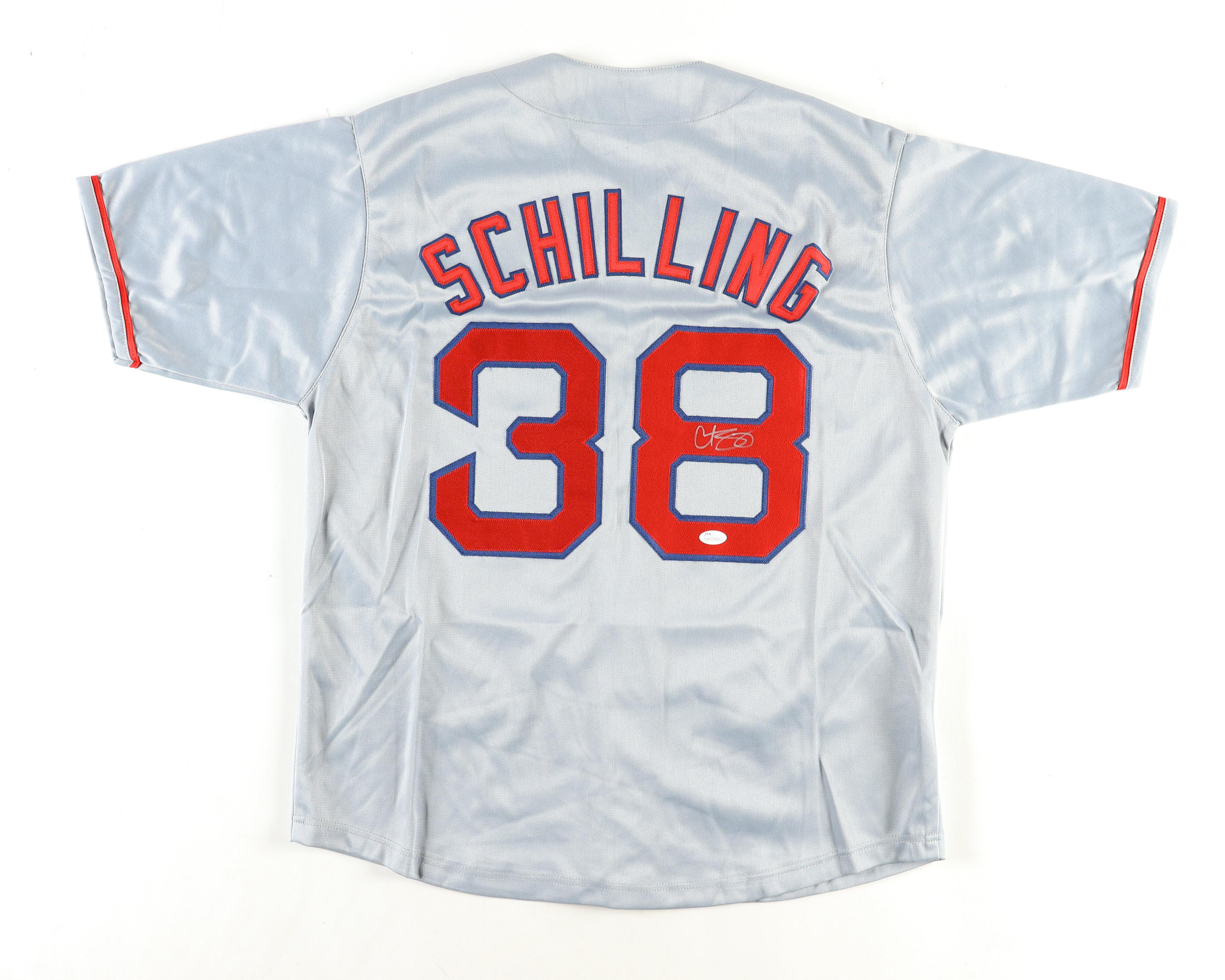 Custom jersey with everything sewn on, size XL. Hand-signed by Curt Schilling.