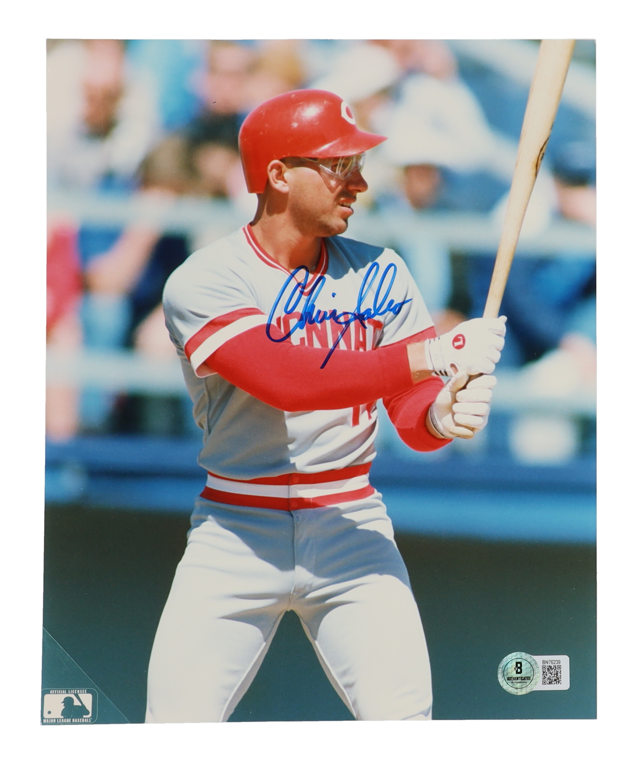 Photo measures 8" x 10" in size and has been hand-signed by Chris Sabo (Cincinnati Reds).