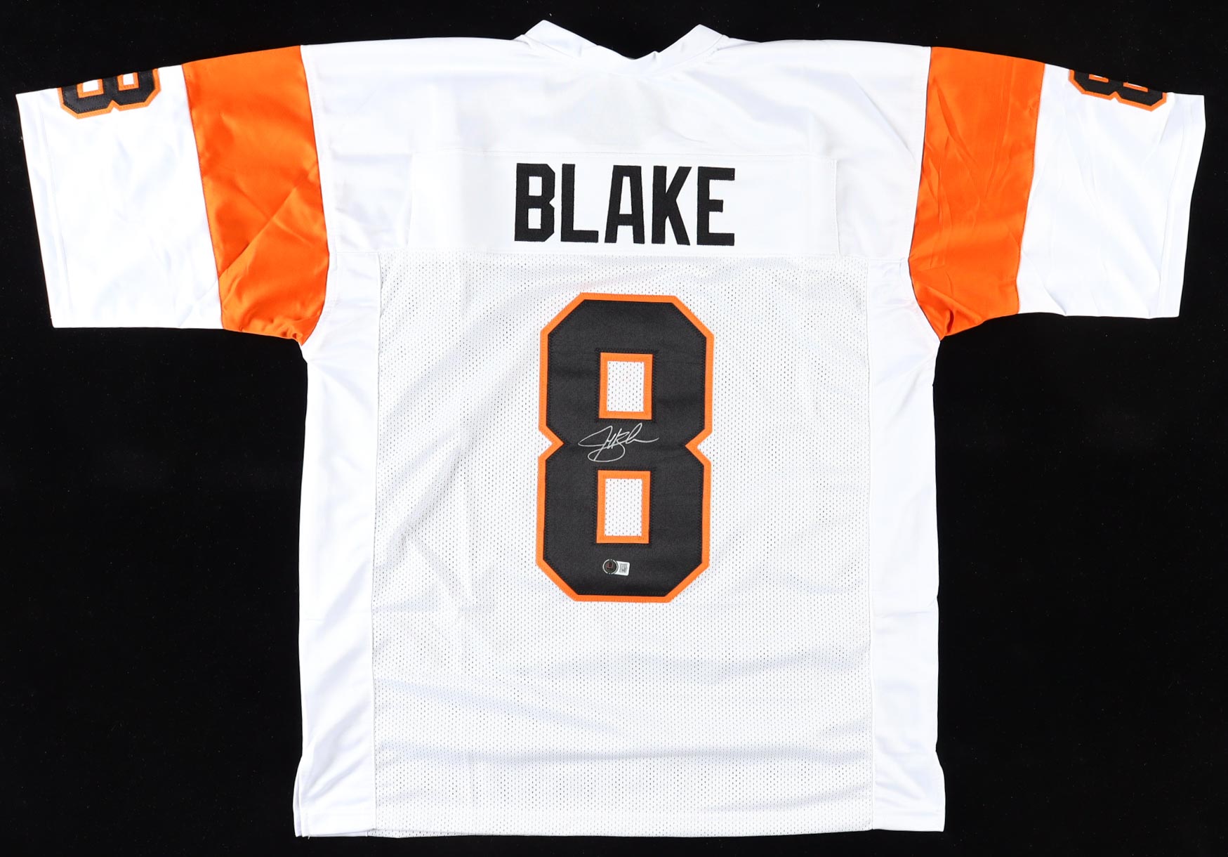Custom jersey. Everything sewn on, size XL. Hand-signed by Jeff Blake.
