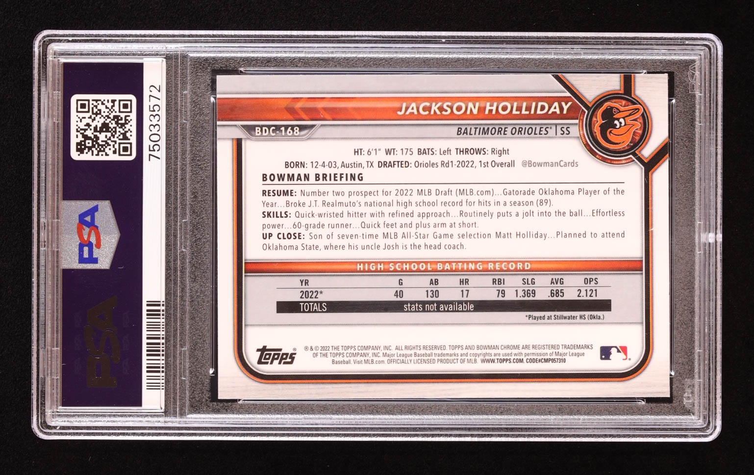 Jackson Holliday 2022 Bowman Chrome Draft #BDC168 RC (PSA 10)