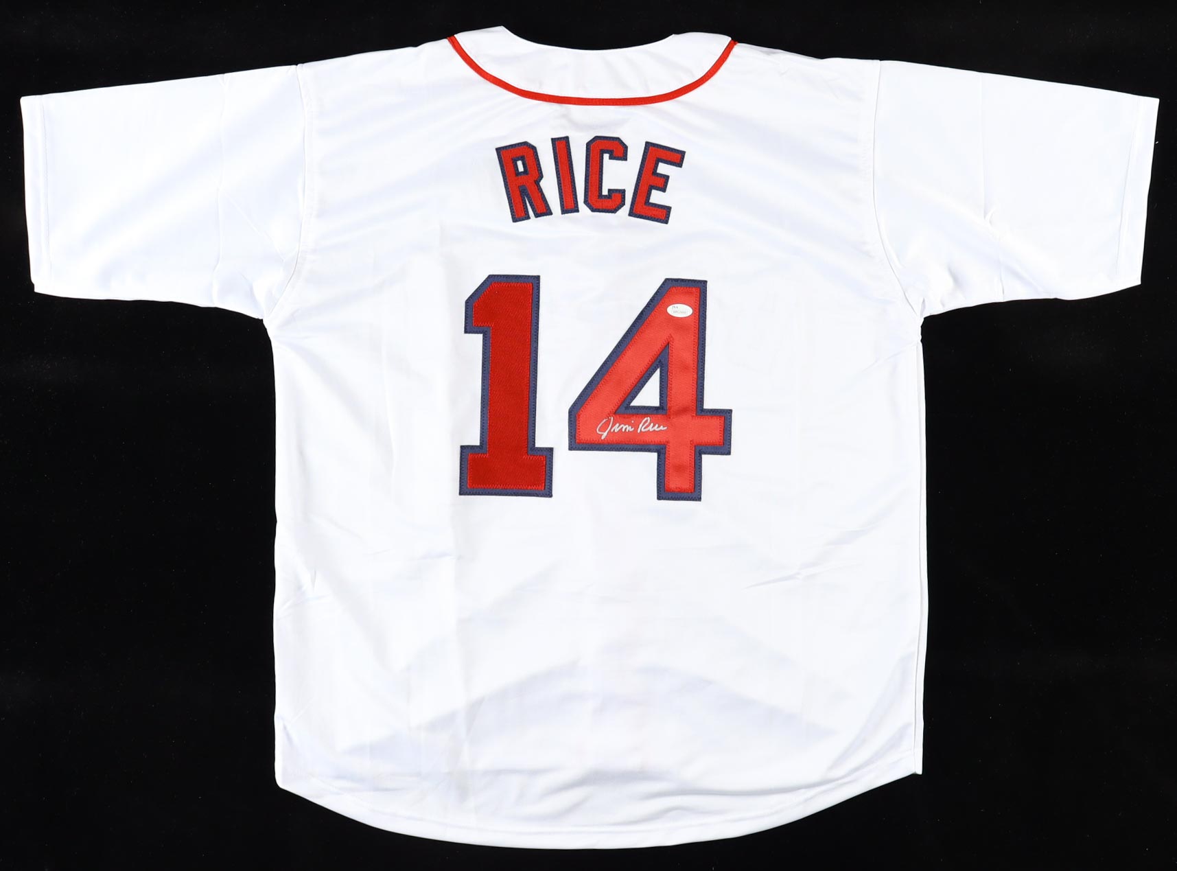 Custom jersey. Everything is sewn on, size XL. Hand-signed by Jim Rice (HOF).