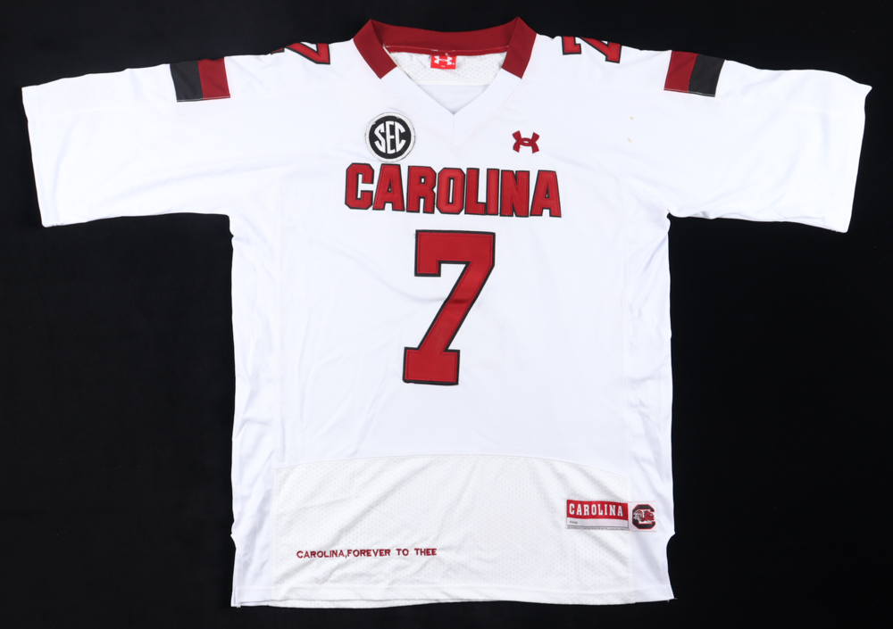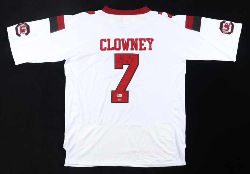 Under Armour football jersey. Everything sewn on, size 54. Hand-signed by Jadeveon Clowney. Please note, there are stains in the left sleeve and front number.. See photos regarding the condition of the item.