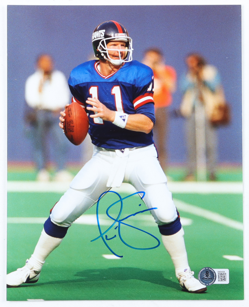 Photo measures 8" x 10" in size and has been hand-signed by Phil Simms (New York Giants).