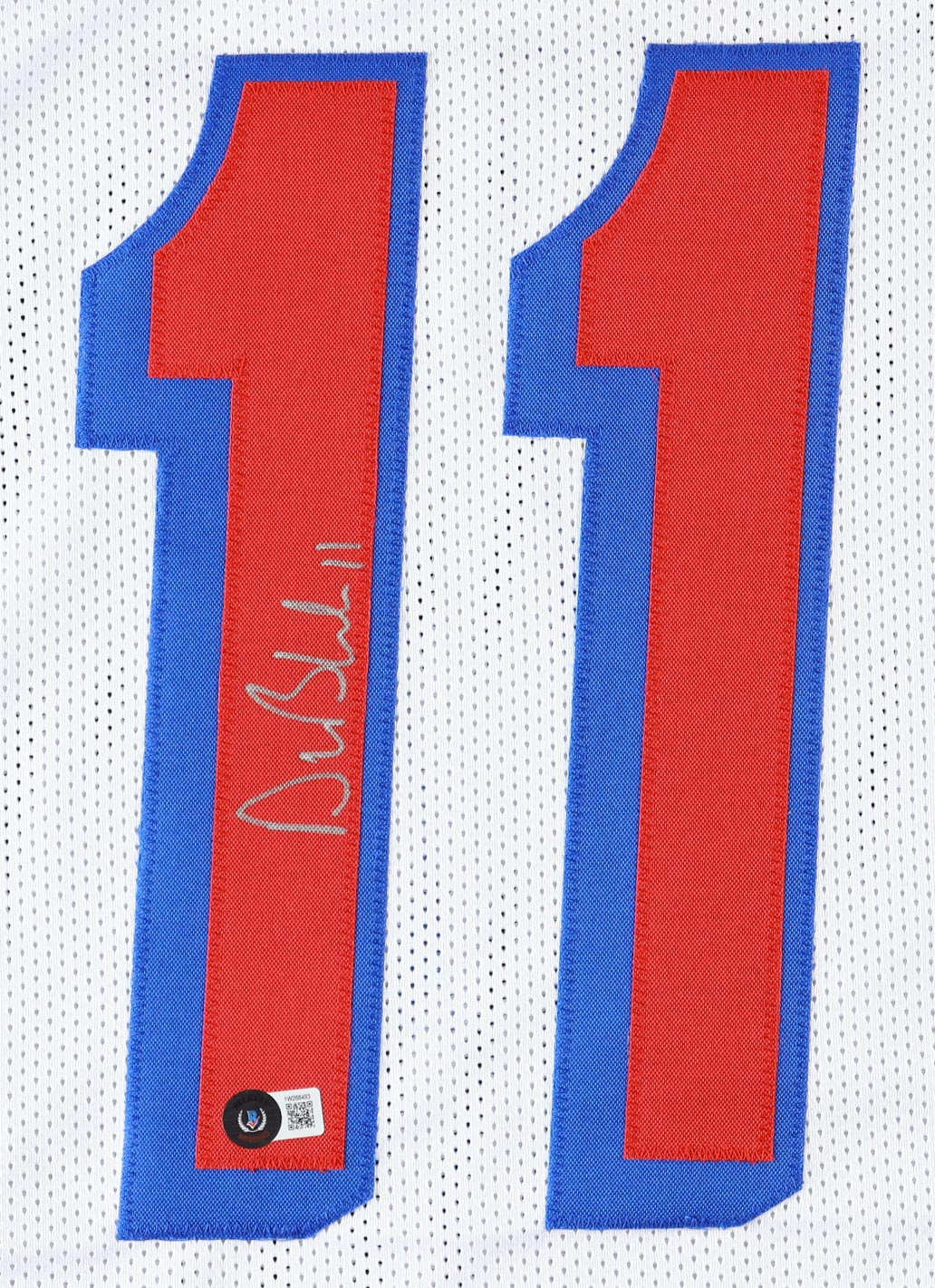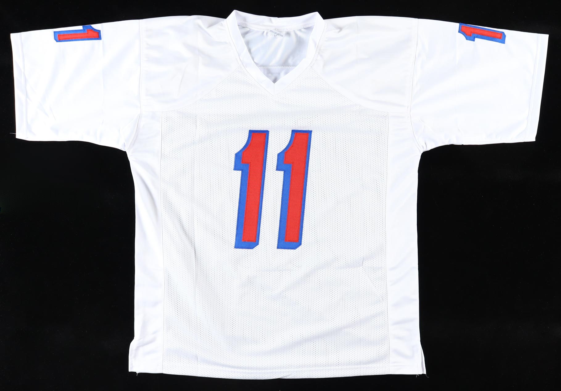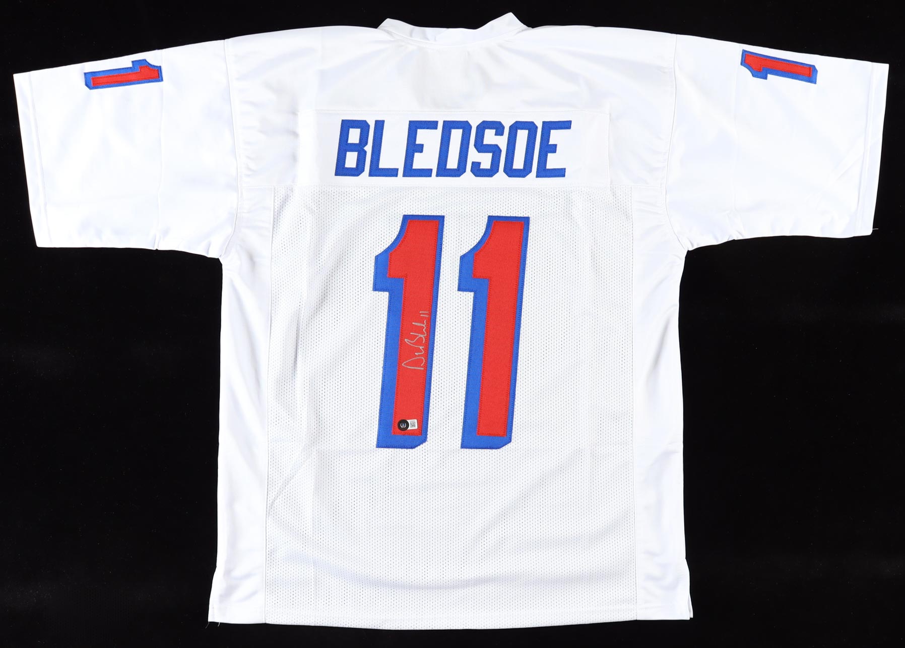 Custom jersey with everything sewn on, size XL. Hand-signed by Drew Bledsoe.