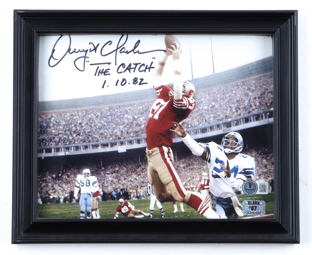 Dwight Clark Signed 49ers Custom Framed Photo Display Inscribed "The Catch" & "1.10.82" (Beckett & Clark)