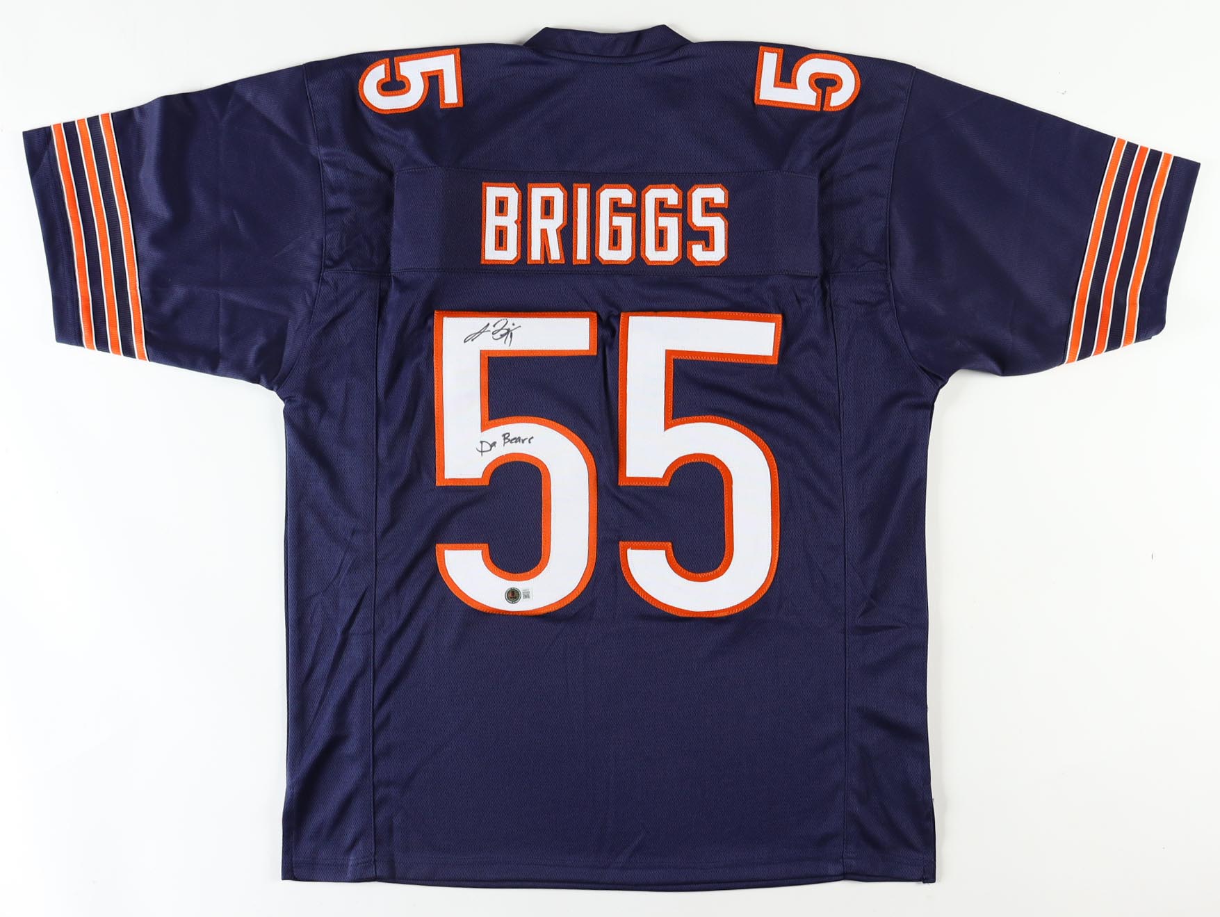 Custom jersey. Everything is sewn on, size XL. Hand-signed and inscribed by Lance Briggs.