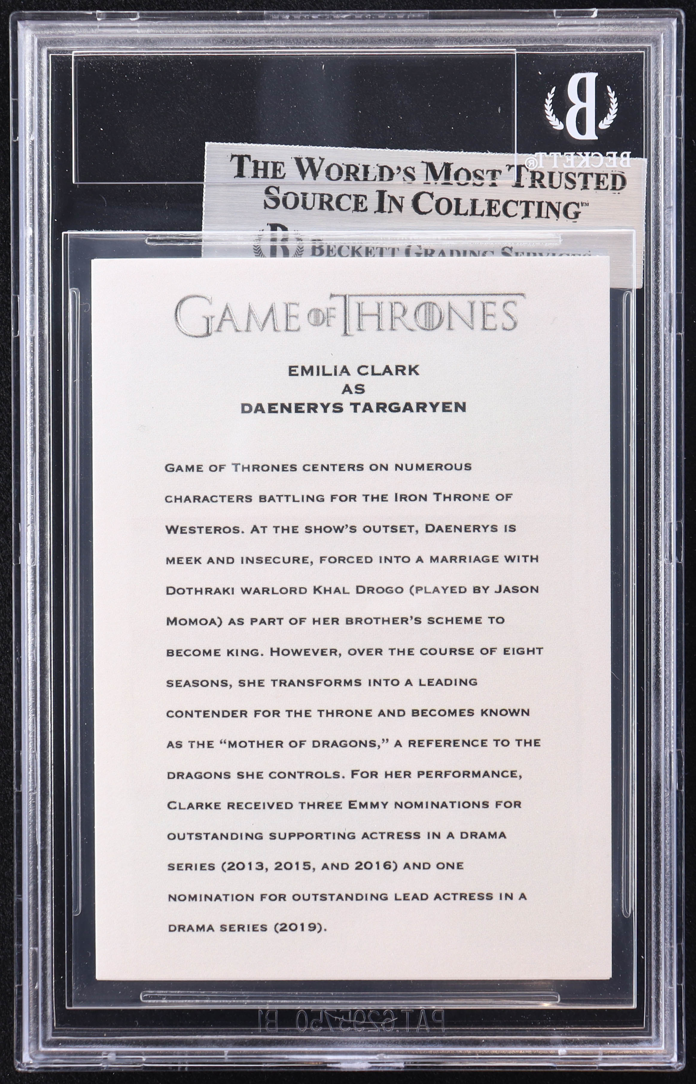Emilia Clarke Signed "Game of Thrones" Custom Trading Card (BGS)