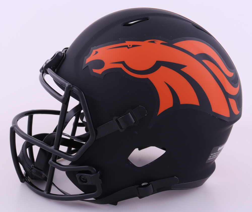 Riddell Denver Broncos full-size replica eclipse alternate speed helmet. Hand-signed by Bo Nix.