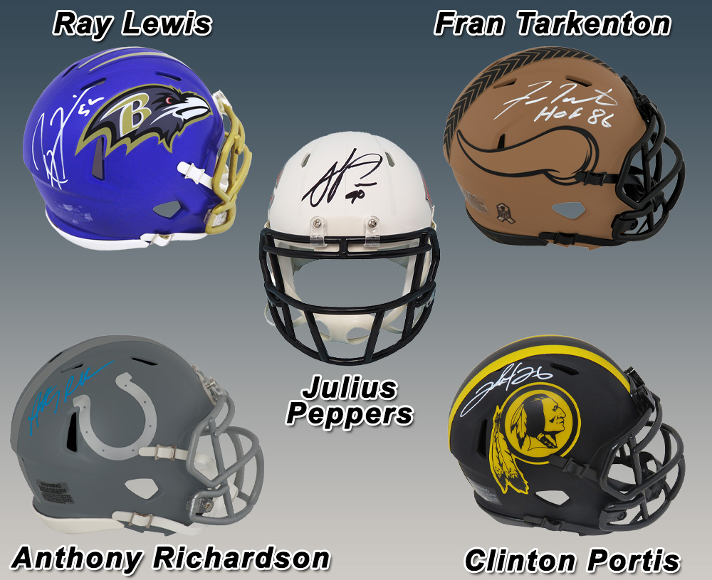 Also Included: Cris Carter, John Hannah, Will Shields, Ted Hendricks, Billy Sims, Anthony Munoz, Ottis Anderson, Kevin Mawae, Tony Boselli, Jim McMahon, Larry Brown, Lenny Moore, Mark Brunell, Mark Moseley, Jim Covert, Ozzie Newsome, Daunte Culpepper, Jonathan Ogden, Ron Dayne, Christian Okoye, Steve DeBerg, Donovan Peoples-Jones, Corey Dillon, Jim Plunkett, Dan Fouts, Andre Rison, Bob Griese, Dave Robinson, Rickey Jackson, Vinny Testaverde, Ron Jaworski, Joe Thomas, Brad Johnson, Anthony Thomas, Charlie Joiner, Roger Wehrli, Joe Klecko, Randy White, Louis Lipps, Jack Youngblood, Ken Houston & Mike Singletary.