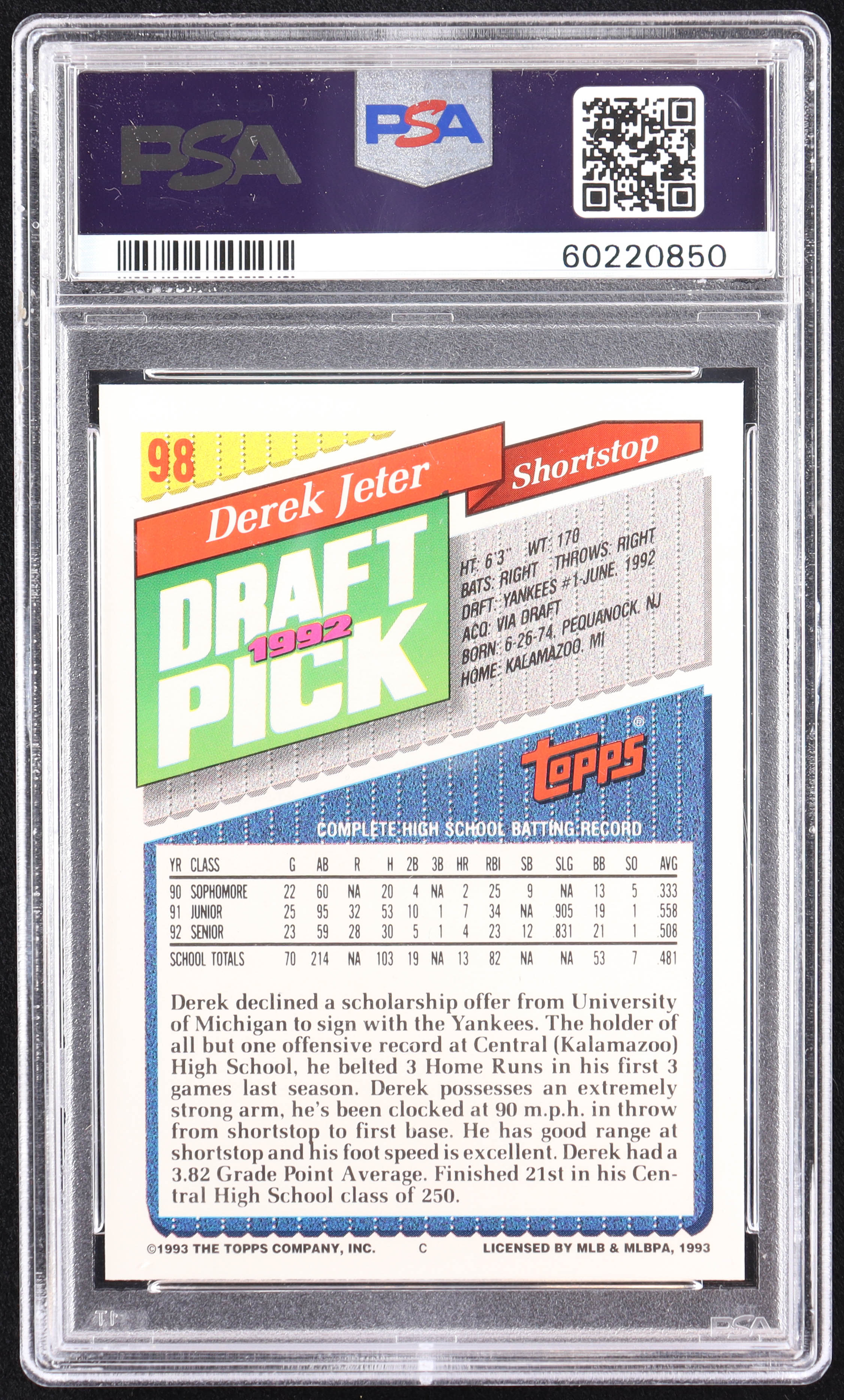 Derek Jeter 1993 Topps #98 RC (PSA 9)