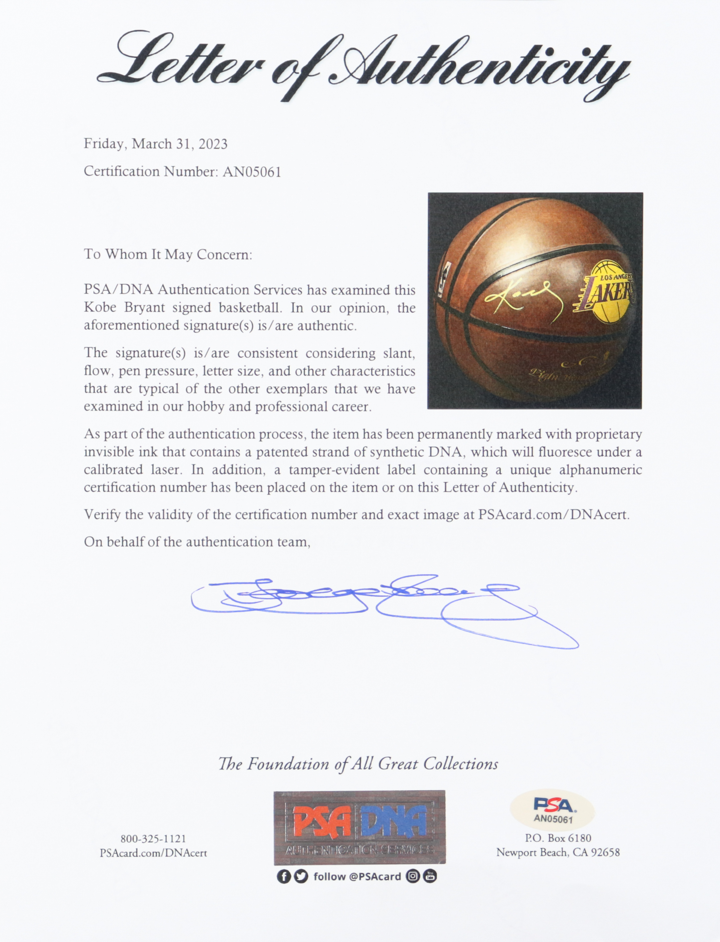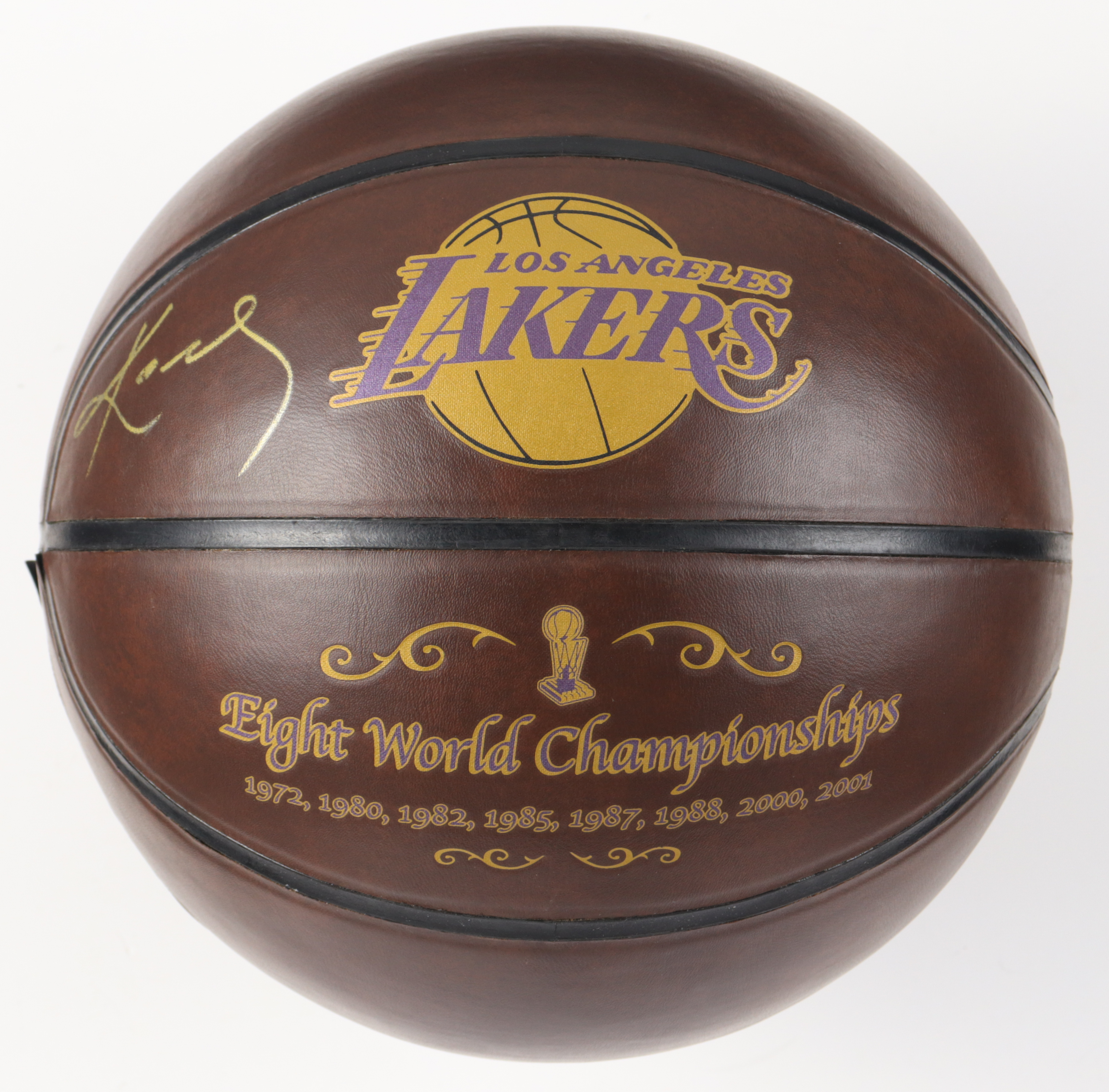 The autograph includes an official PSA/DNA hologram and matching LOA for authenticity purposes. Also includes a hologram and LOA from the Lakers.