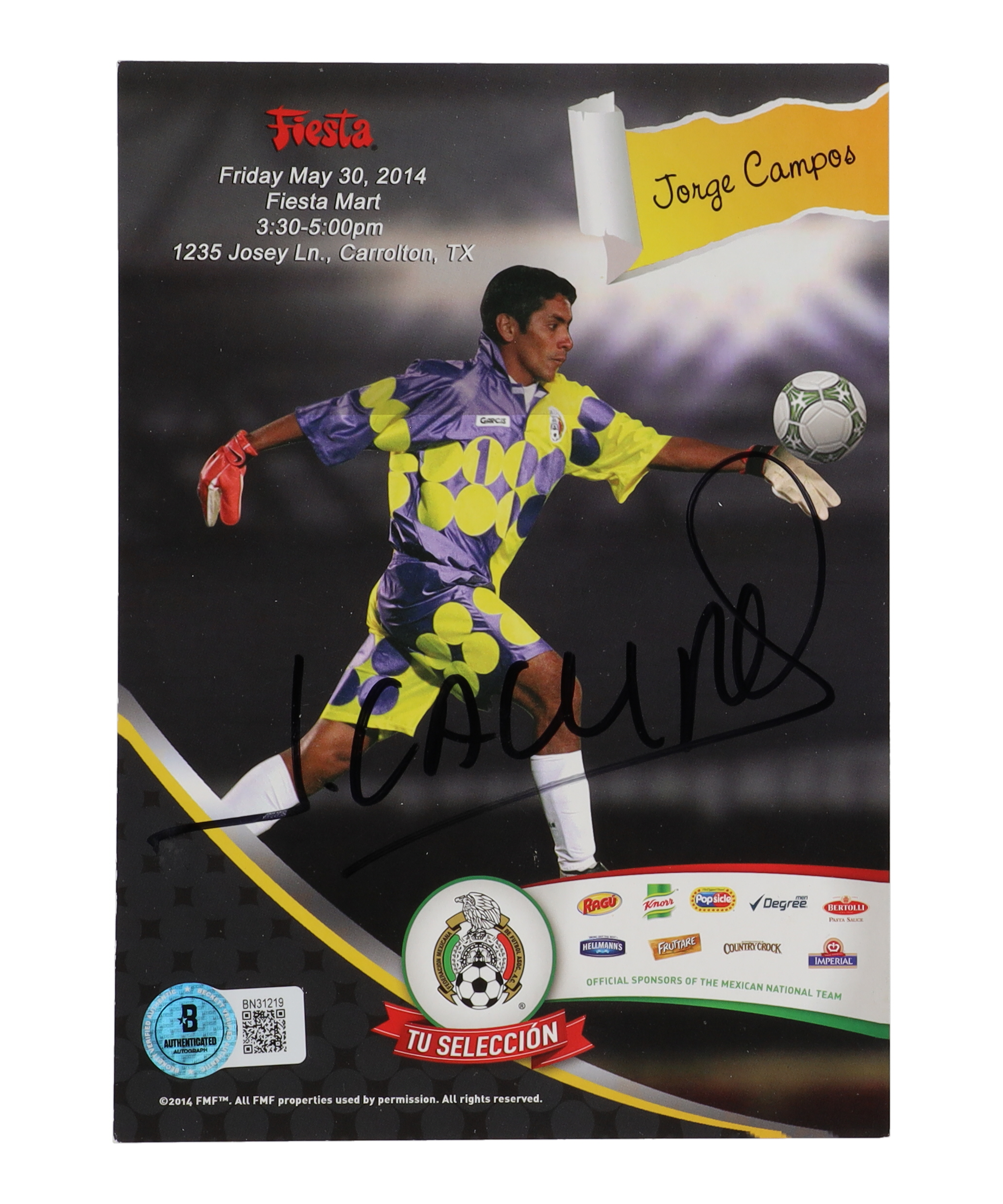 Jorge Campos Signed Team Mexico 5x7 Flyer (Beckett)