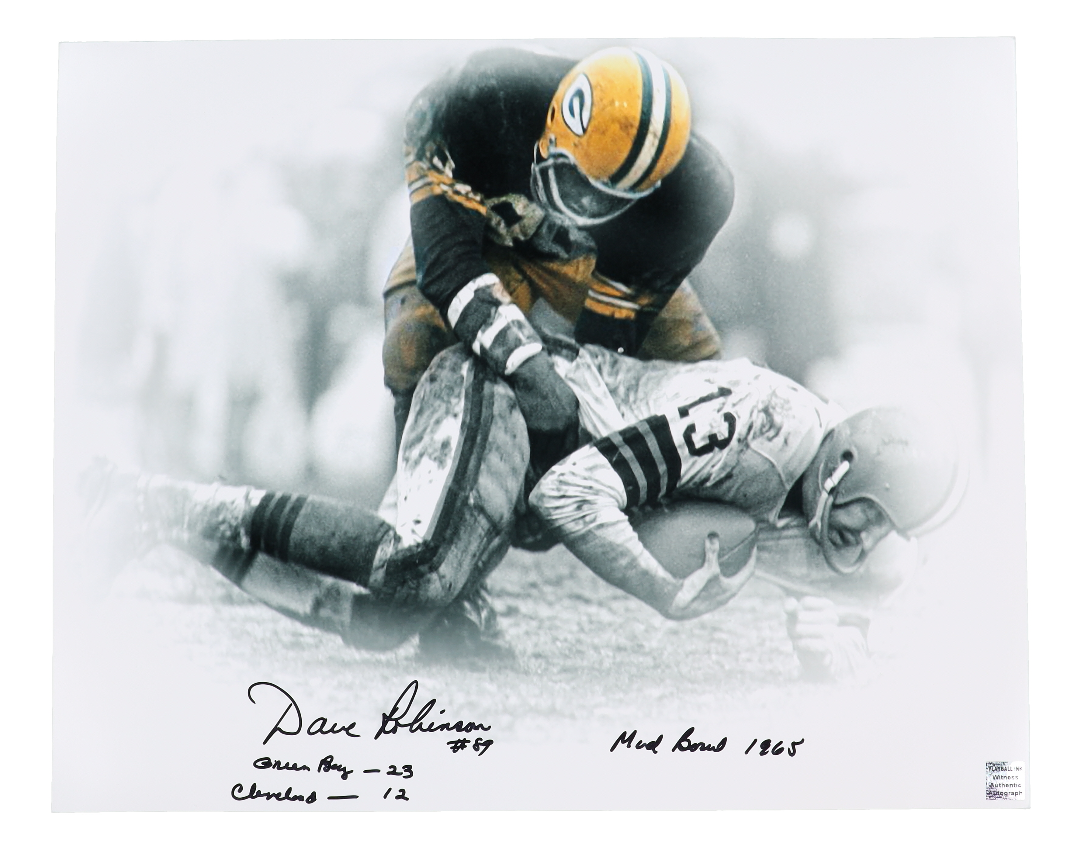 Dave Robinson Signed "Packers" 16x20 Photo Inscribed "Green Bay - 23, Cleveland - 12" & "Mud Bowl 1965" (Playball Ink)
