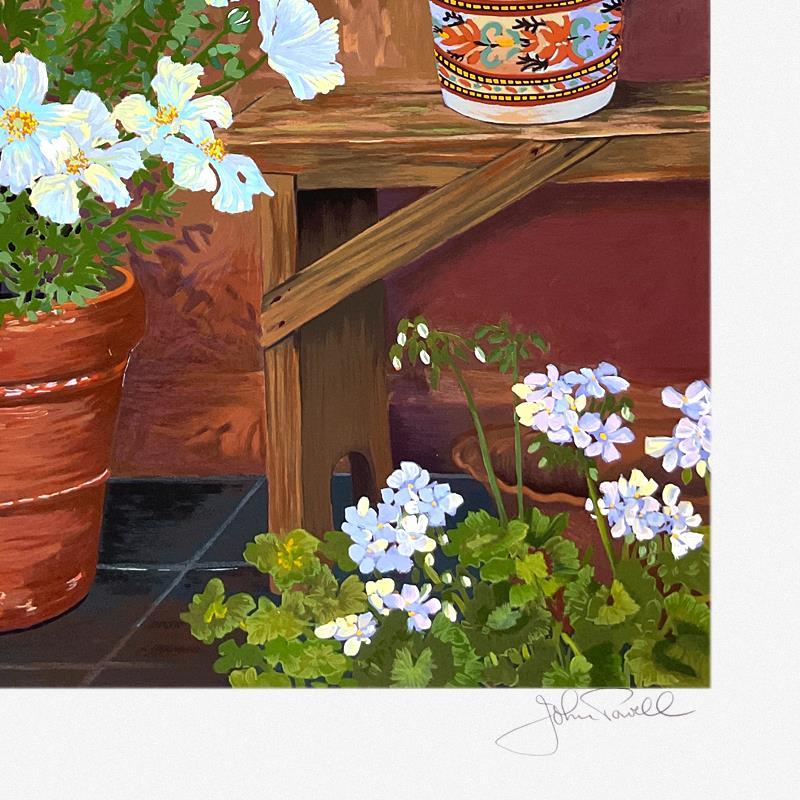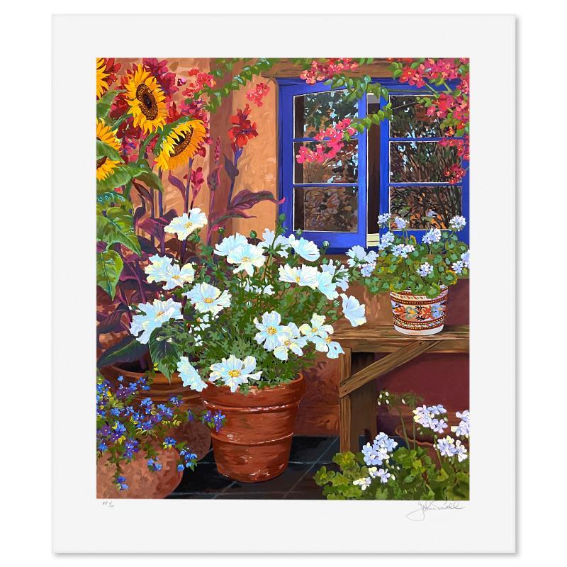 "Blue Window" is a limited edition printer's proof serigraph on paper by John Powell, numbered 1/21 and hand signed by the artist. Includes Letter of Authenticity. Measures approx. 30" x 25" (border), 24" x 20" (image).
