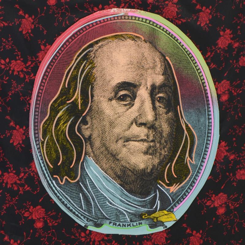 "Old Ben Franklin" Limited Edition 24x26 Hand-Painted Silkscreen on Canvas with Python Pattern Fabric Background by Steve Kaufman (PA)