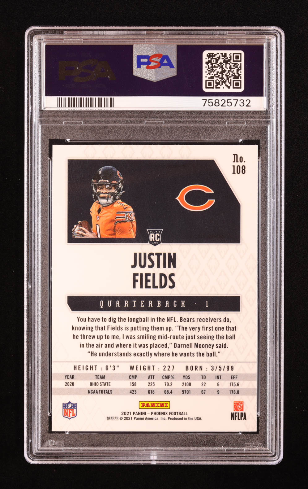Justin Fields 2021 Panini Phoenix Fire Burst #108 RC (PSA 10)