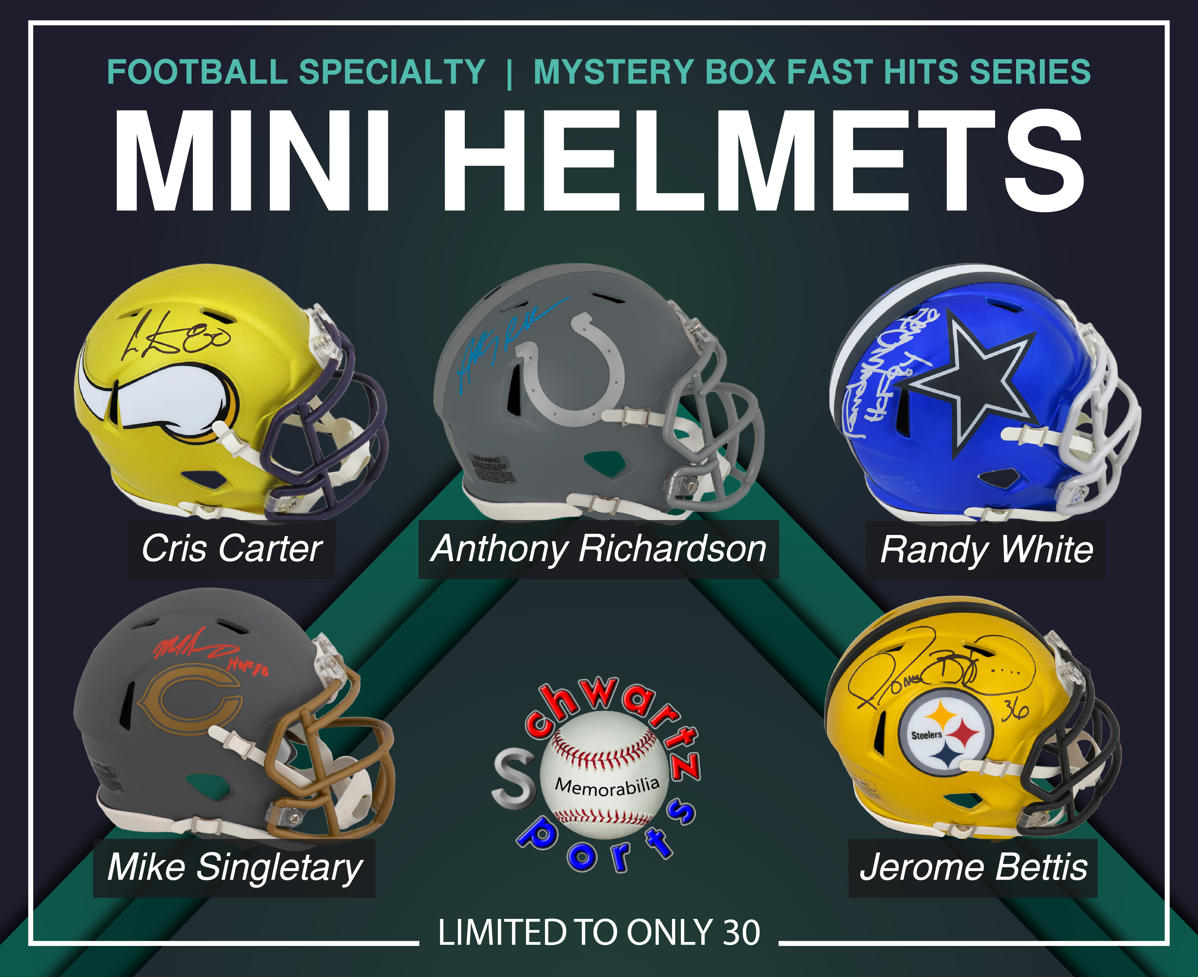 FOOTBALL SPECIALTY MINI HELMET SIGNED Mystery Box – FAST HITS Series 8 (Limited to 30) – Schwartz Sports