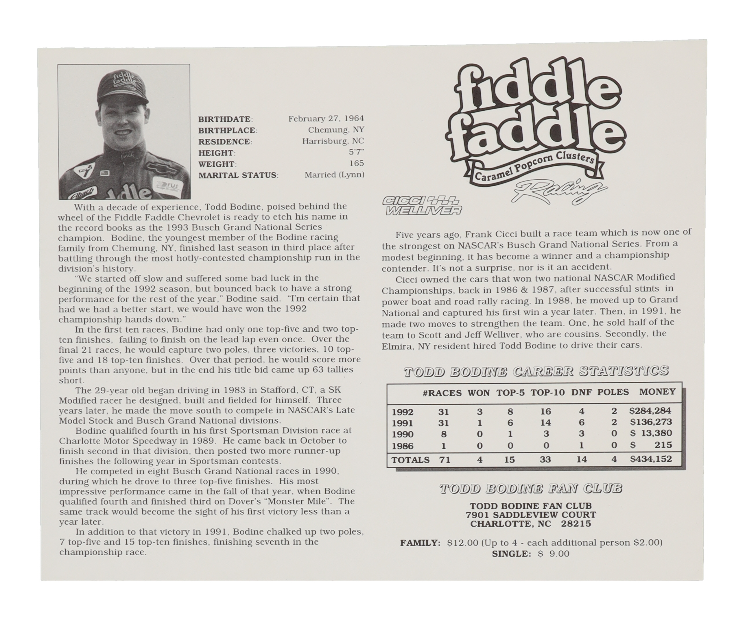 Photo measures approximately 8" x 10" in size. Hand-signed by Todd Bodine.