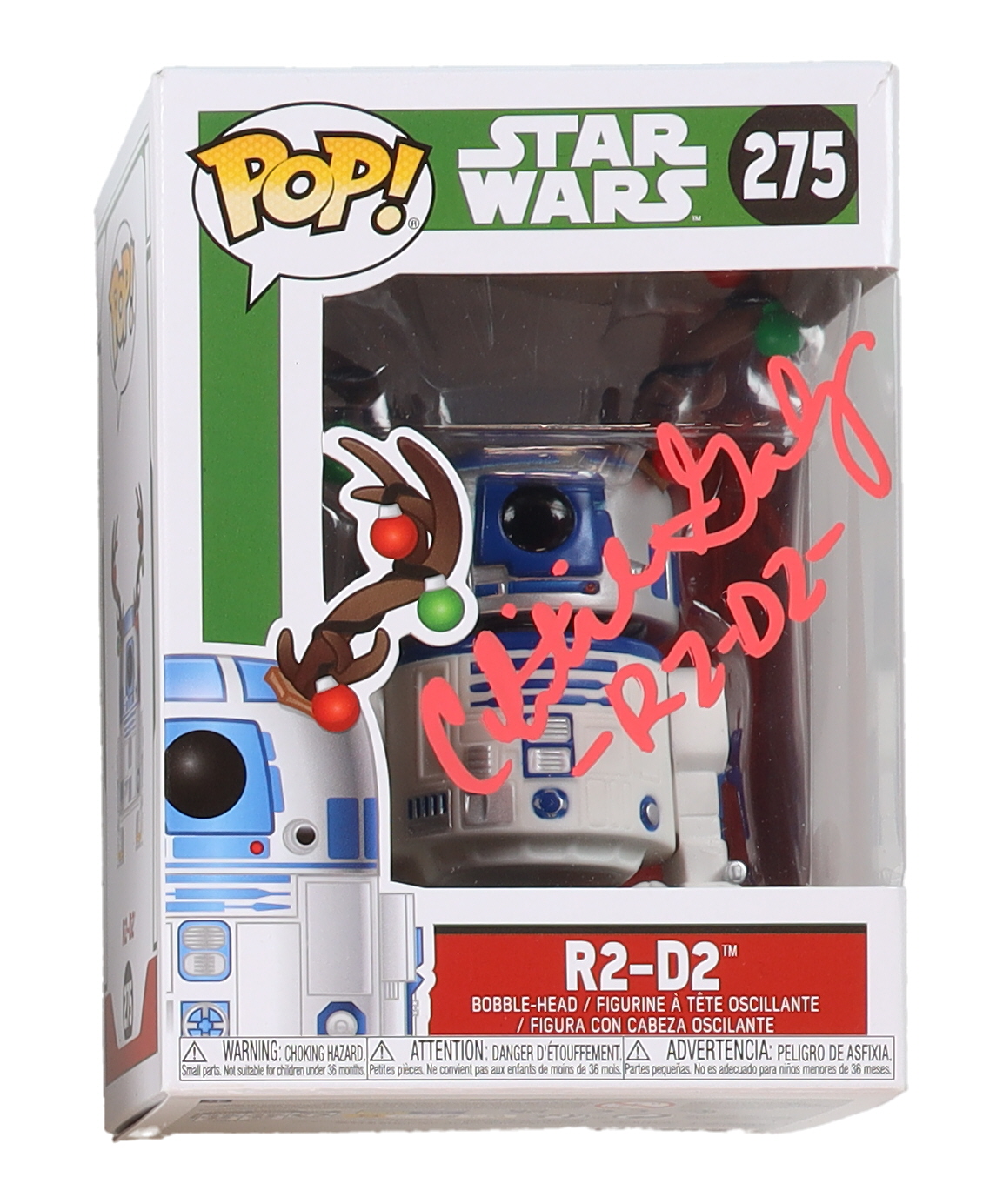 Vinyl figure measures approximately 4" tall and has been hand-signed and inscribed on the packaging by Christine Galey (R2-D2).