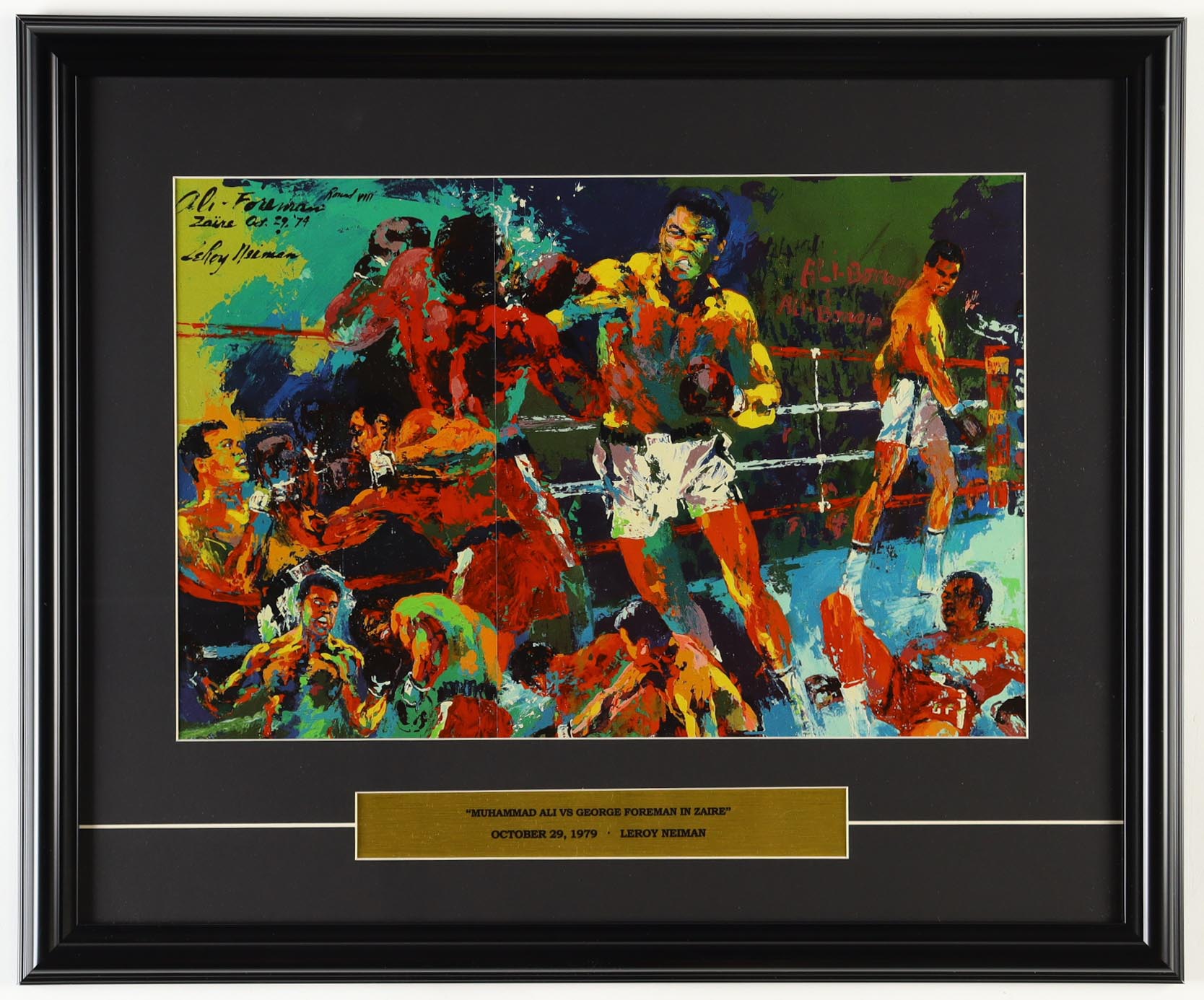 LeRoy Neiman "Muhammad Ali Vs George Foreman In Zaire" Custom Framed Art Print Display