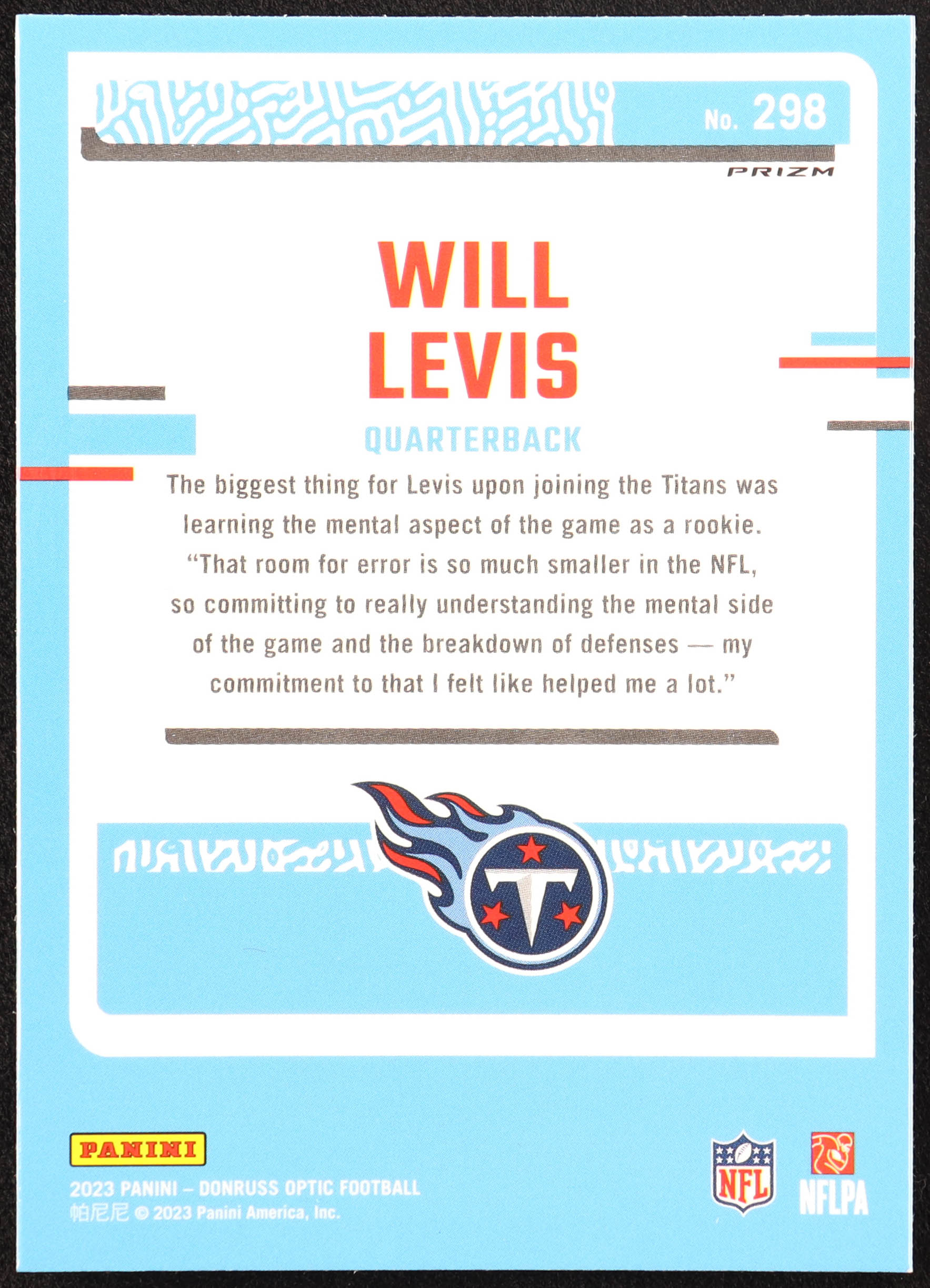 Will Levis 2023 Donruss Optic Purple Shock #270 RR RC