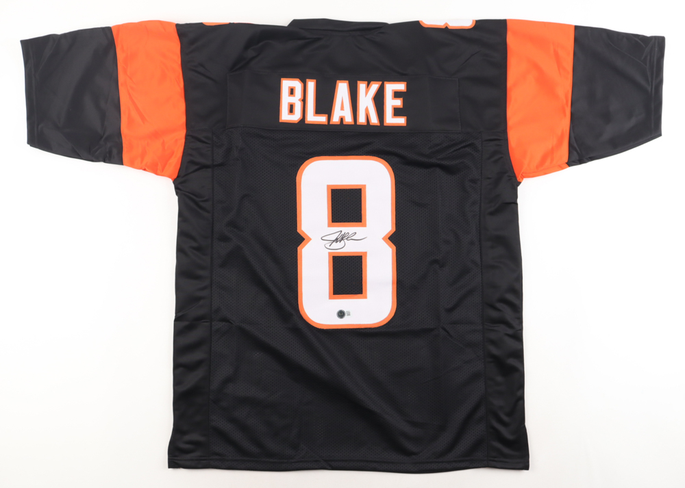 Custom style jersey with everything sewn on, size XL. Hand-signed by Jeff Blake.