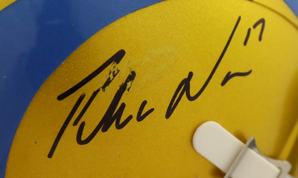 Riddell Los Angeles Rams flash alternate speed mini helmet has been hand-signed by Puka Nacua. Please note, there is scuffing on the autograph.