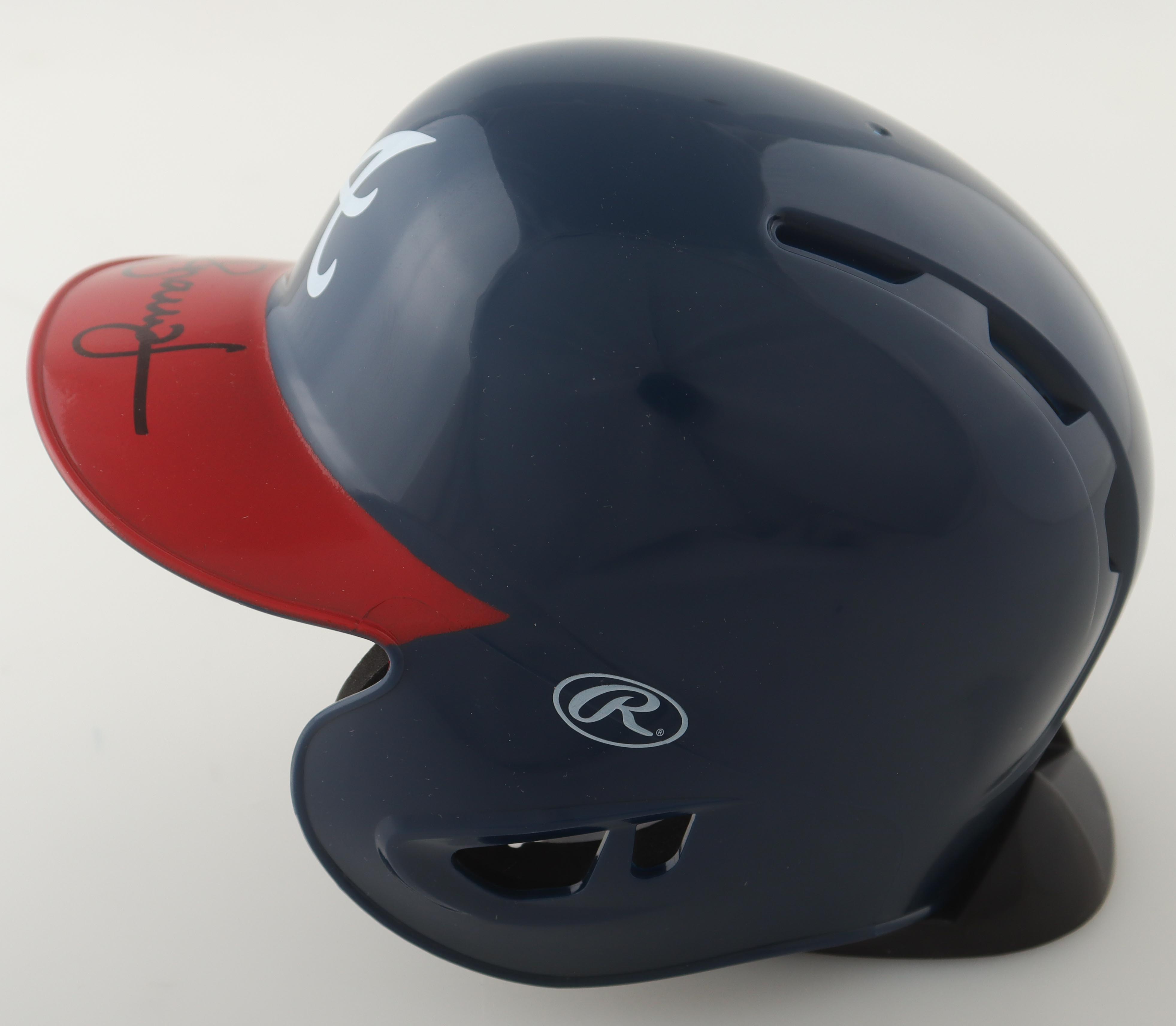 Atlanta Braves mini batting helmet has been hand-signed by Andruw Jones.