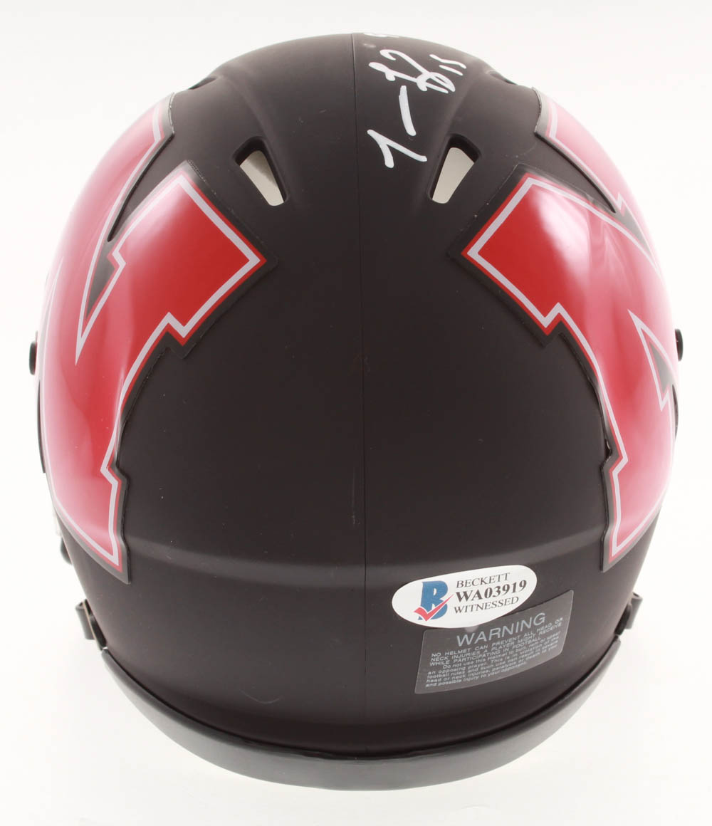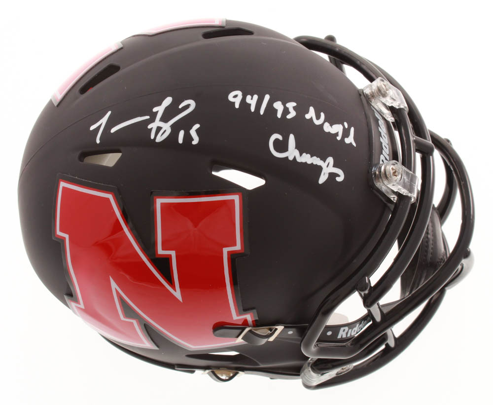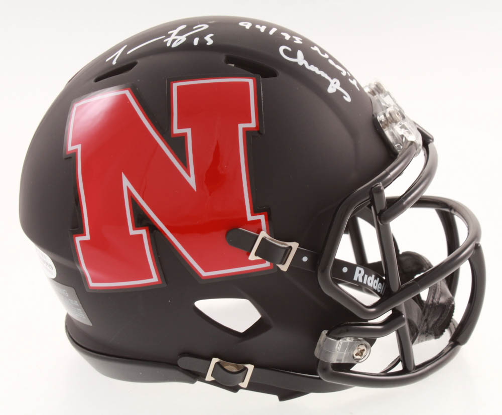 Riddell Nebraska Cornhuskers AMP Alternate Speed mini helmet. Hand-signed and inscribed by Tommie Frazier.