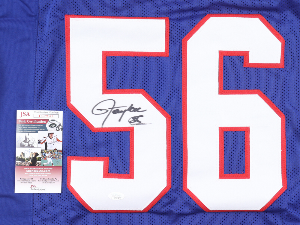 Custom jersey. Everything sewn on, size XL. Hand-signed by Lawrence Taylor (HOF).